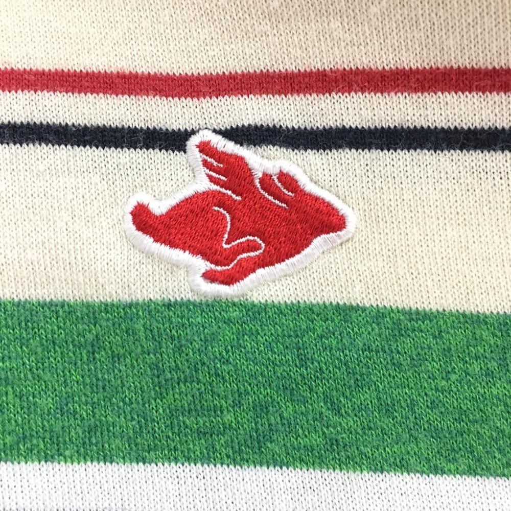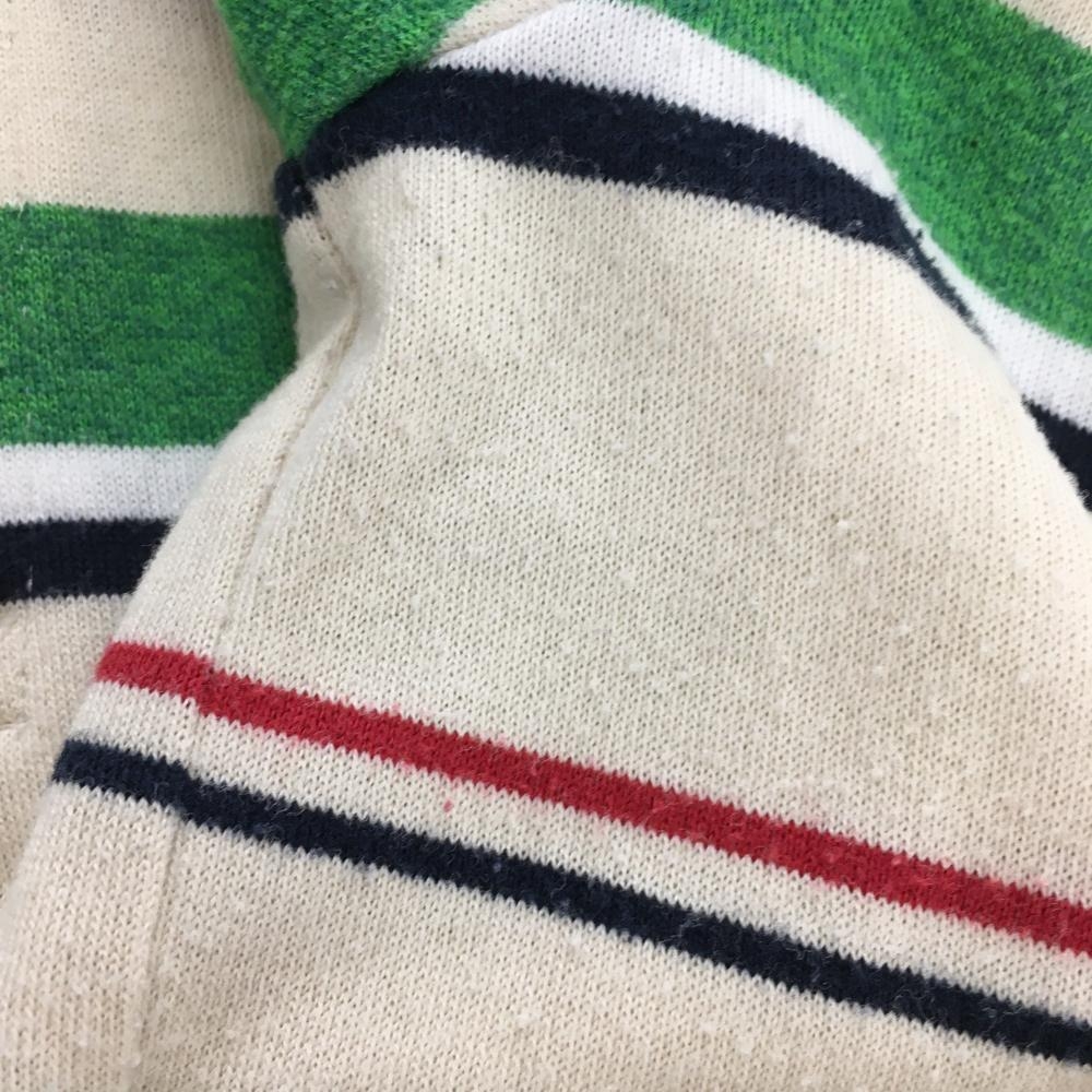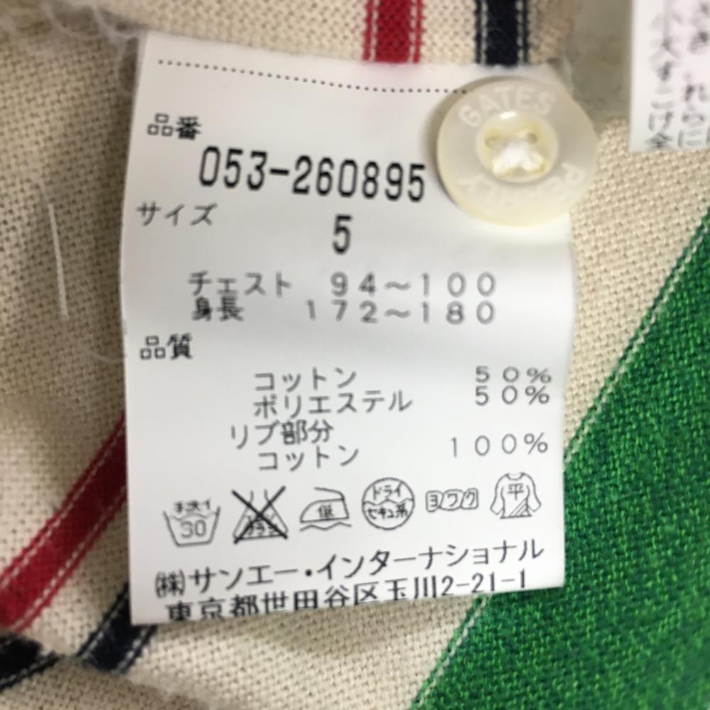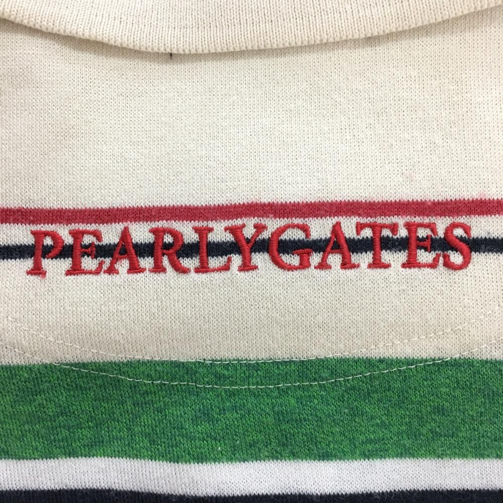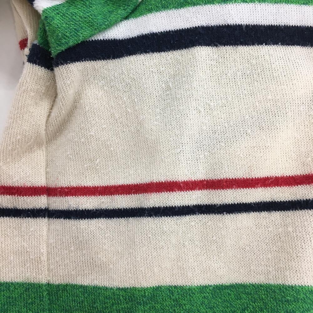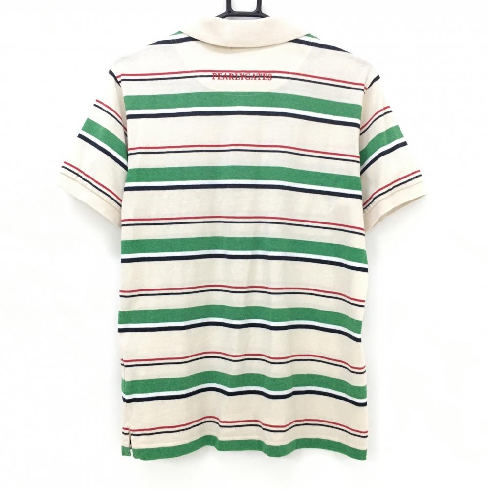 【美品】パーリーゲイツ 半袖ポロシャツ ベージュ×グリーン ランダムボーダー コットン混 日本製 メンズ 5(L) ゴルフウェア PEARLY GATES