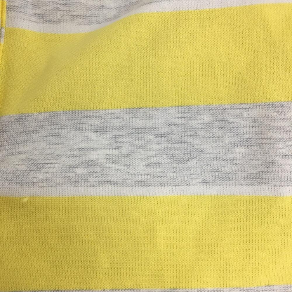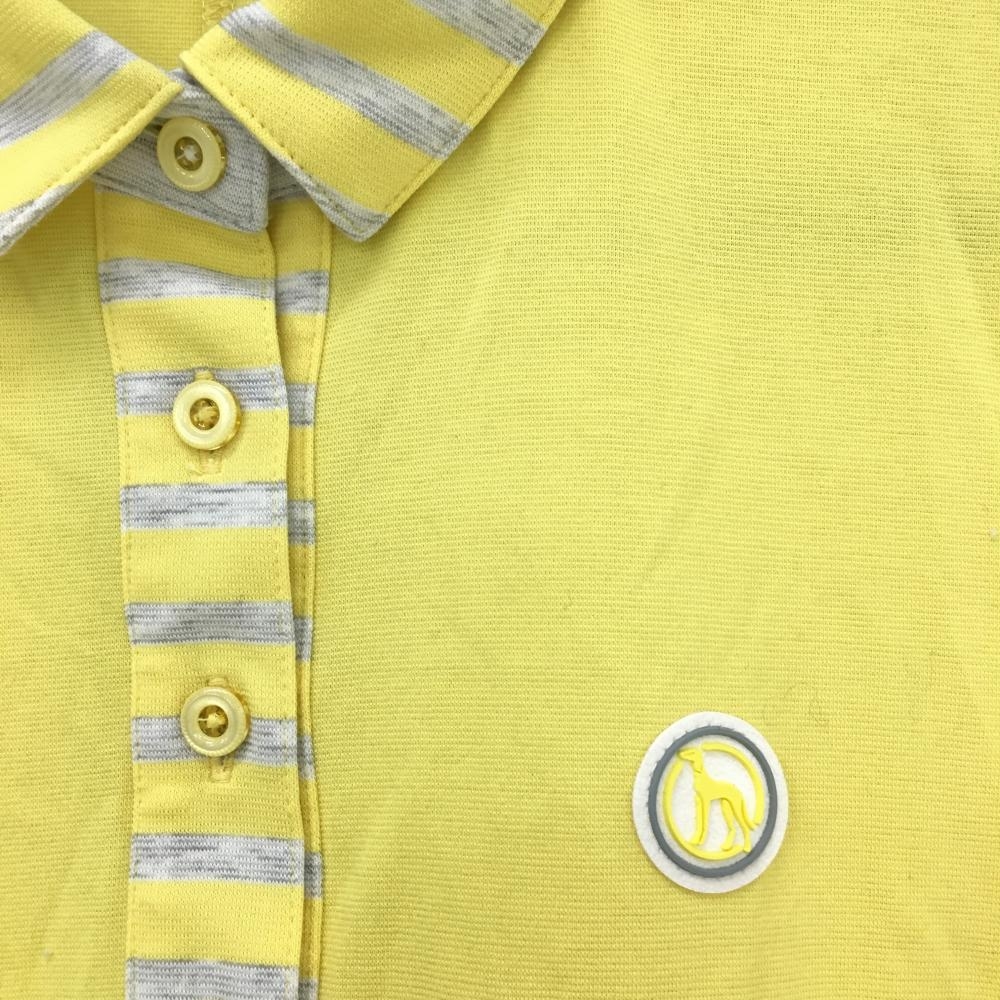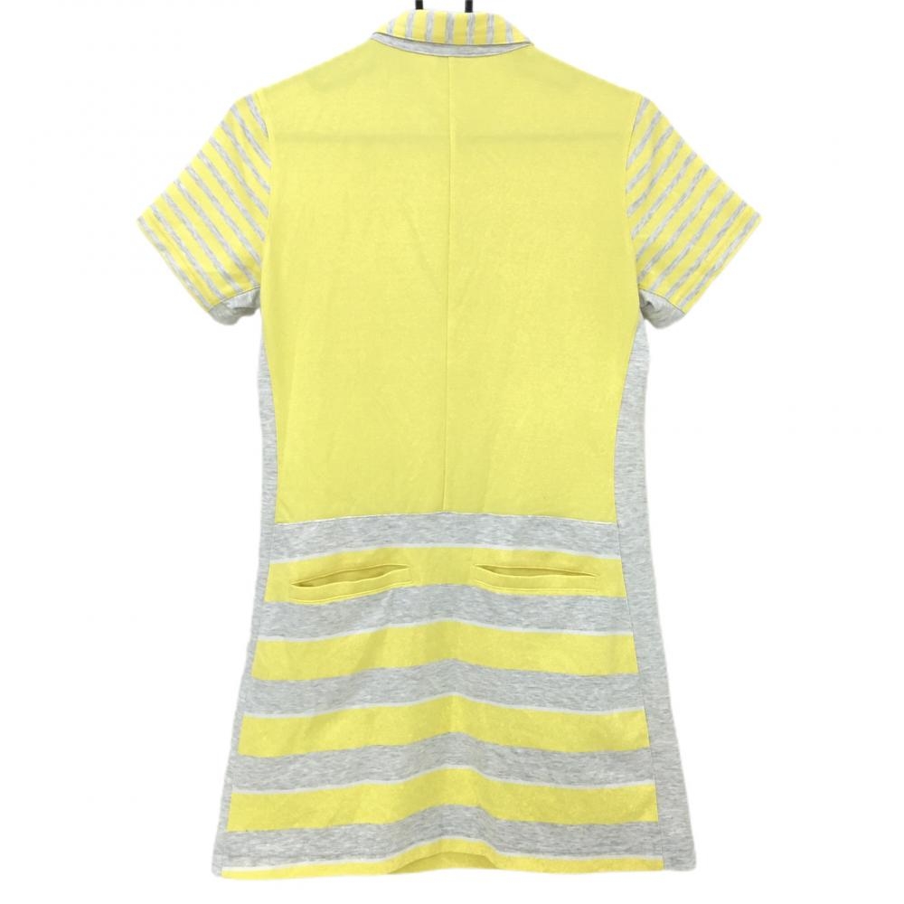 【美品】アダバット 半袖ポロワンピース イエロー×ライトグレー 一部ボーダー柄 シリコンワッペン レディース 38(M) ゴルフウェア adabat