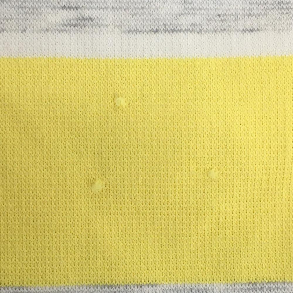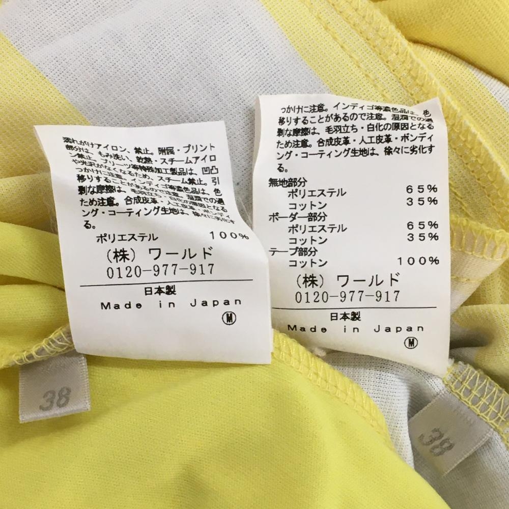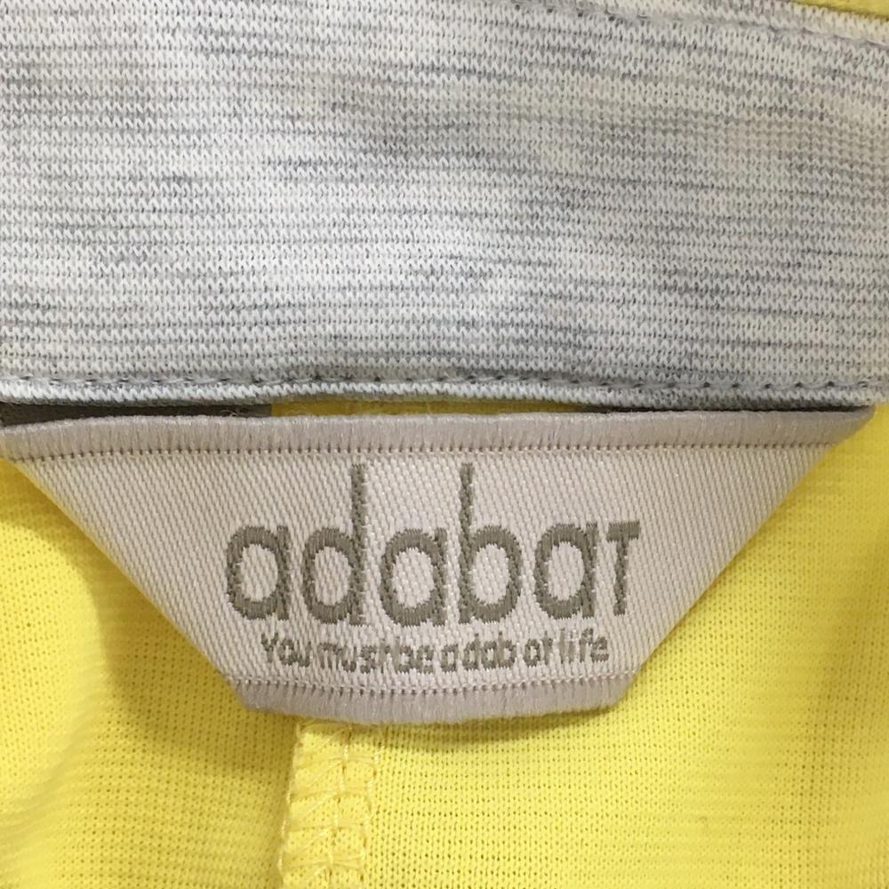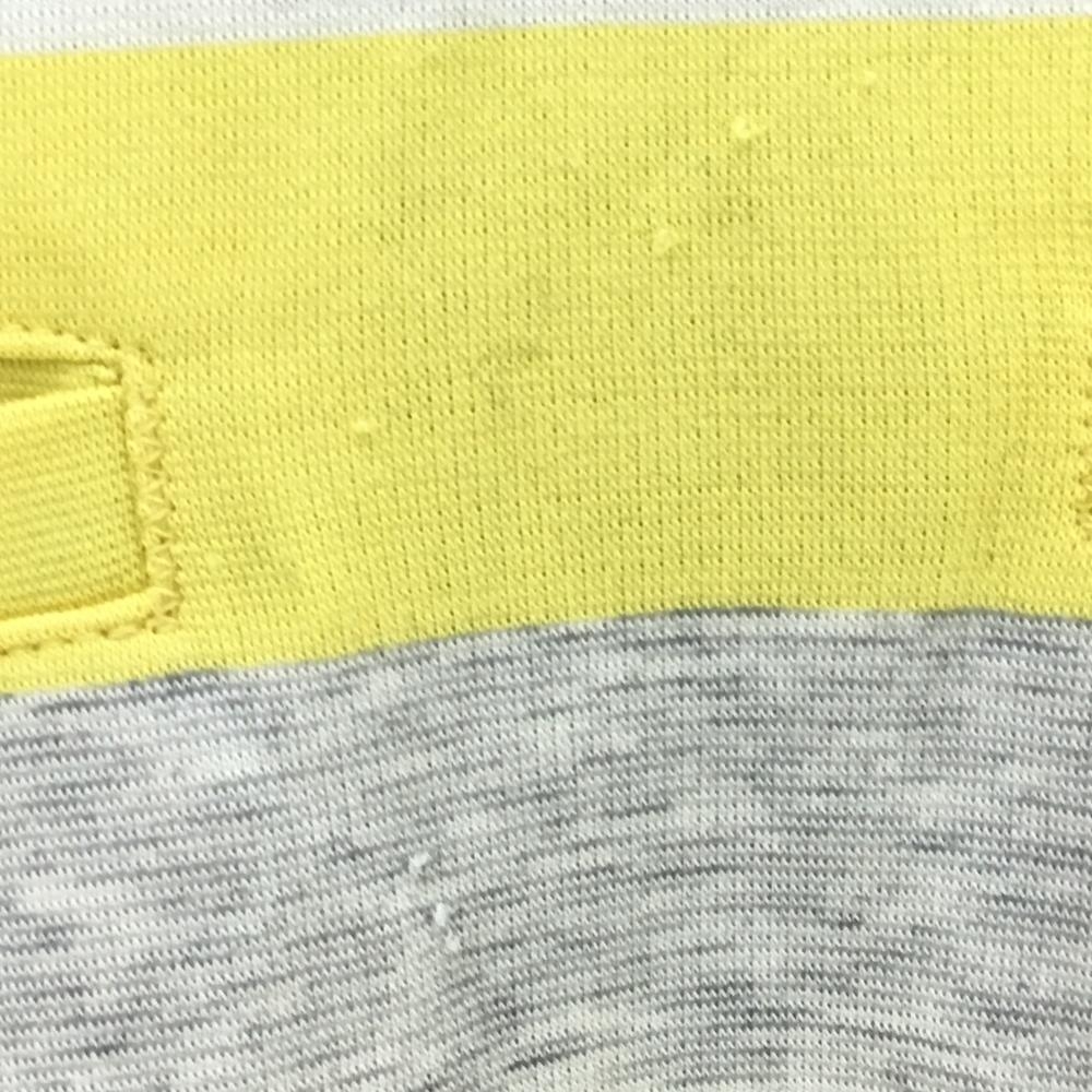 【美品】アダバット 半袖ポロワンピース イエロー×ライトグレー 一部ボーダー柄 シリコンワッペン レディース 38(M) ゴルフウェア adabat
