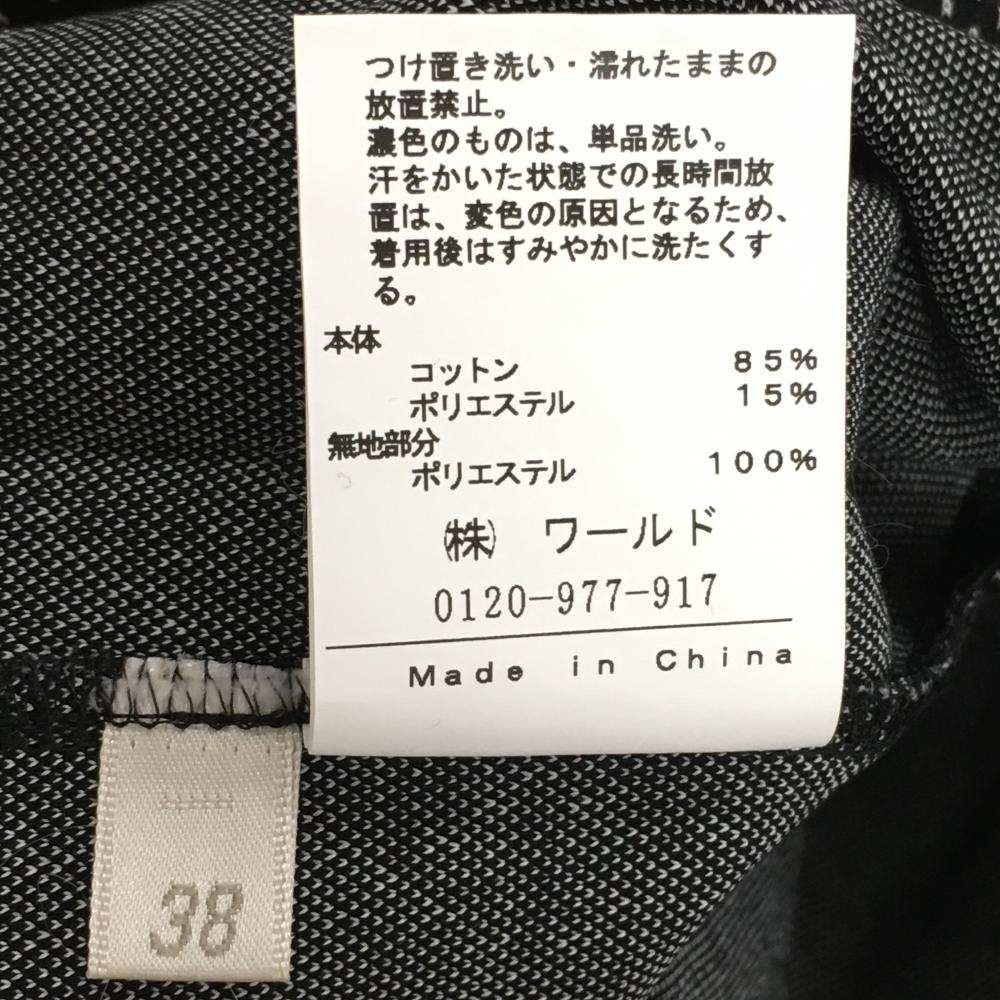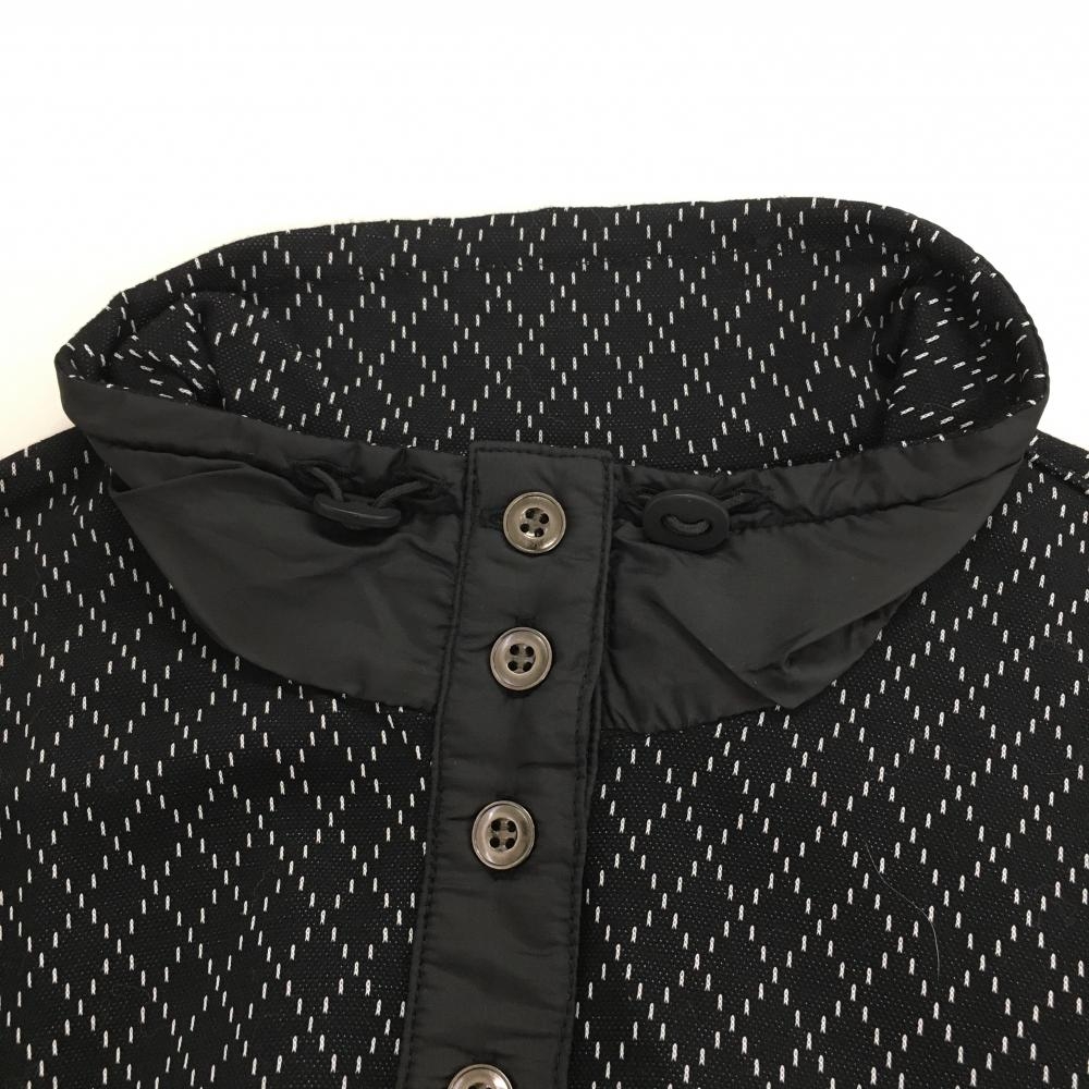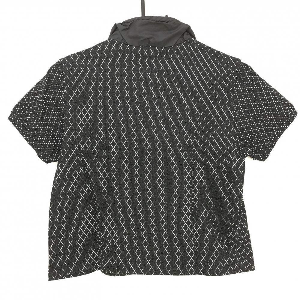 【超美品】アダバット 半袖ハイネックシャツ 黒×白 総柄 スタンドカラー 胸元ロゴ レディース 38(M) ゴルフウェア adabat