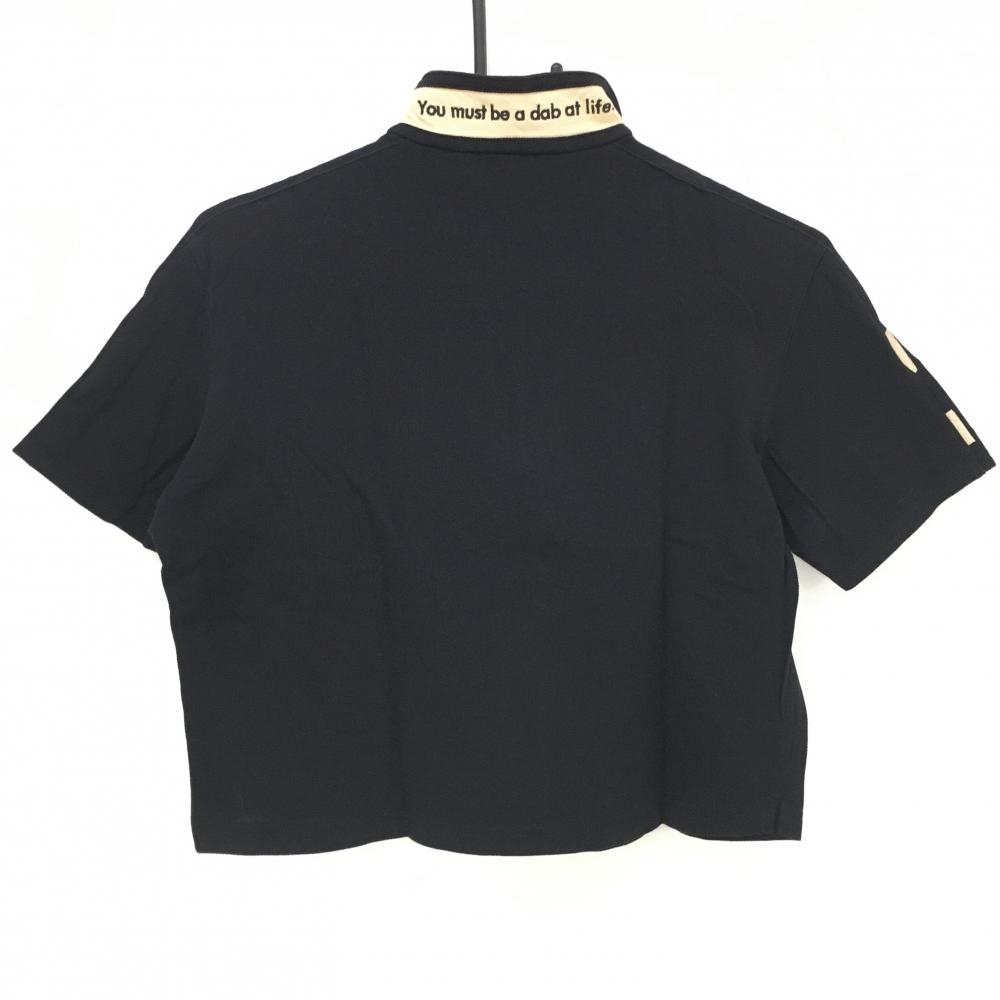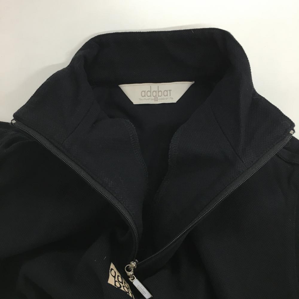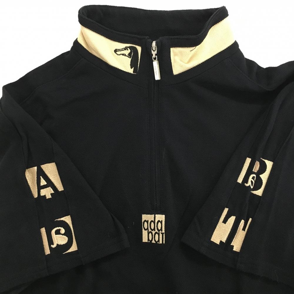 【美品】アダバット 半袖ハイネックシャツ 黒×ベージュ 袖刺しゅう ハーフジップ レディース I(M) ゴルフウェア adabat