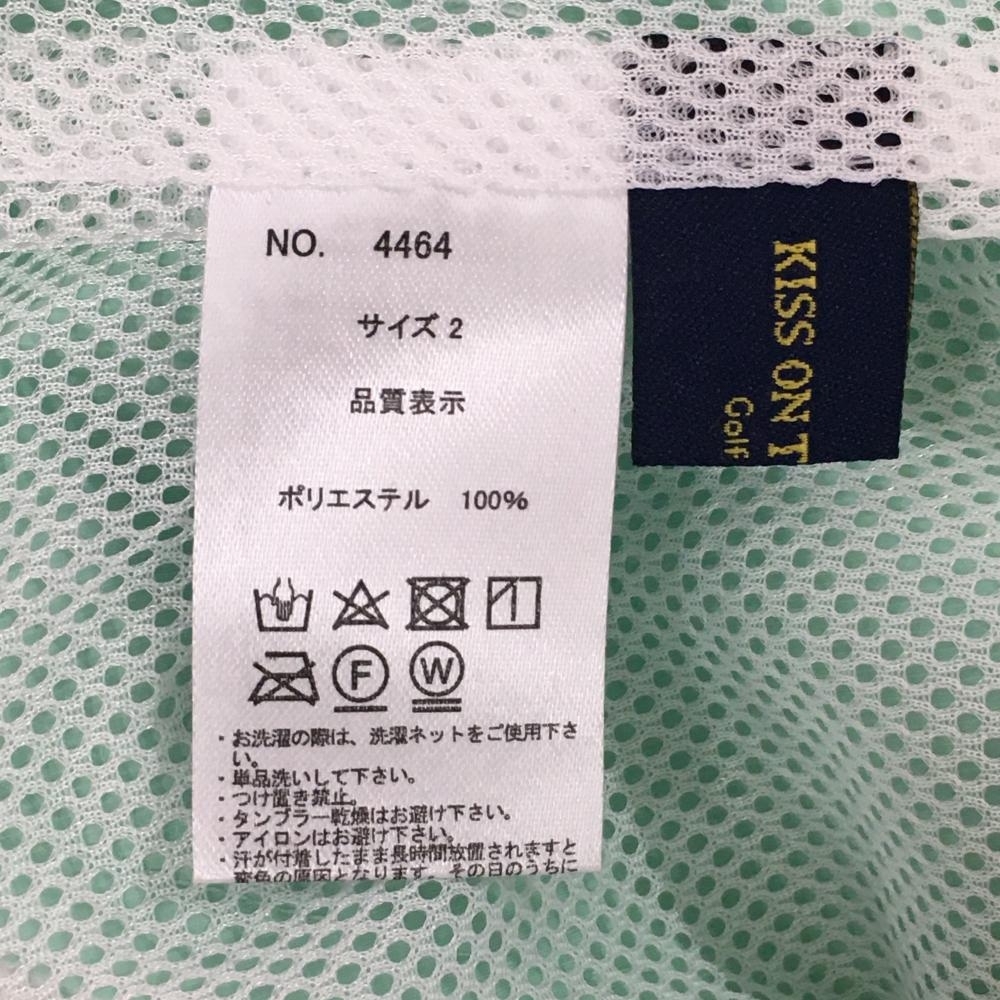 【美品】キスオンザグリーン 半袖ジャケット ライトグリーン×白 ハーフジップ レディース 2(M) ゴルフウェア kiss on the green