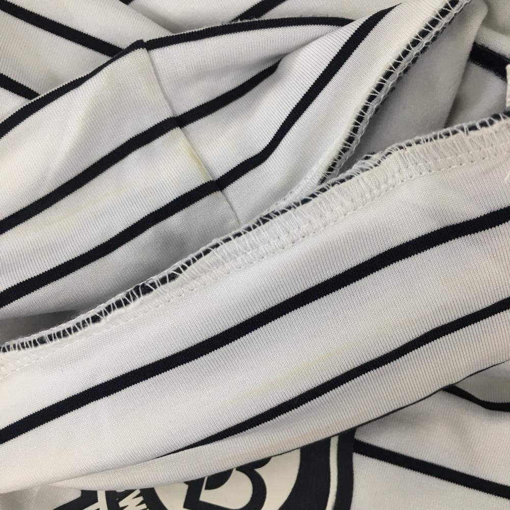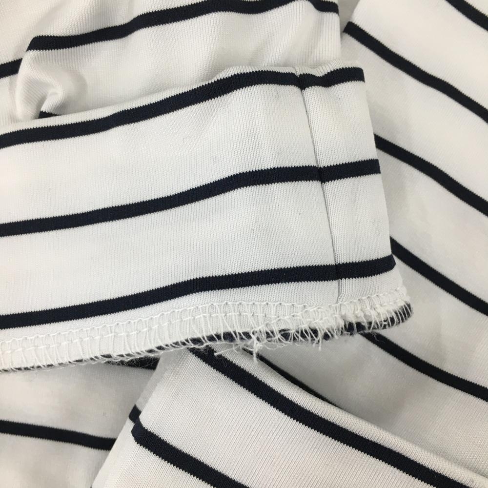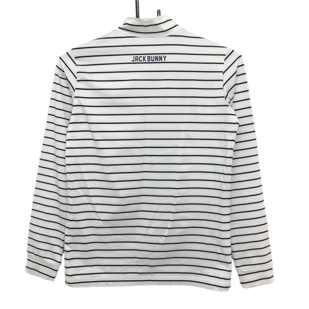 ジャックバニー 長袖ハイネックシャツ 白×ダークネイビー ボーダー 裏微起毛 ロゴプリント レディース 0(S) ゴルフウェア Jack Bunny