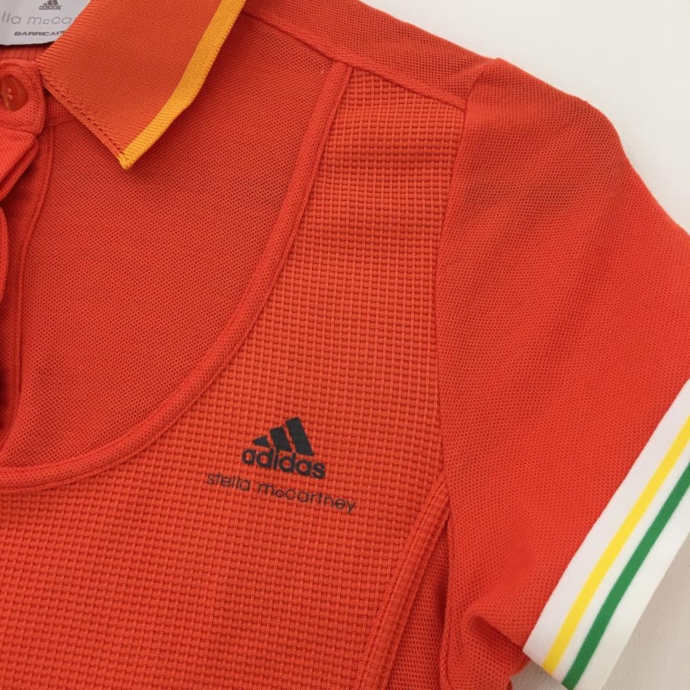 【超美品】アディダス 半袖ポロシャツ オレンジ×白 stella mccartney 袖口ライン レディース L ゴルフウェア adidas