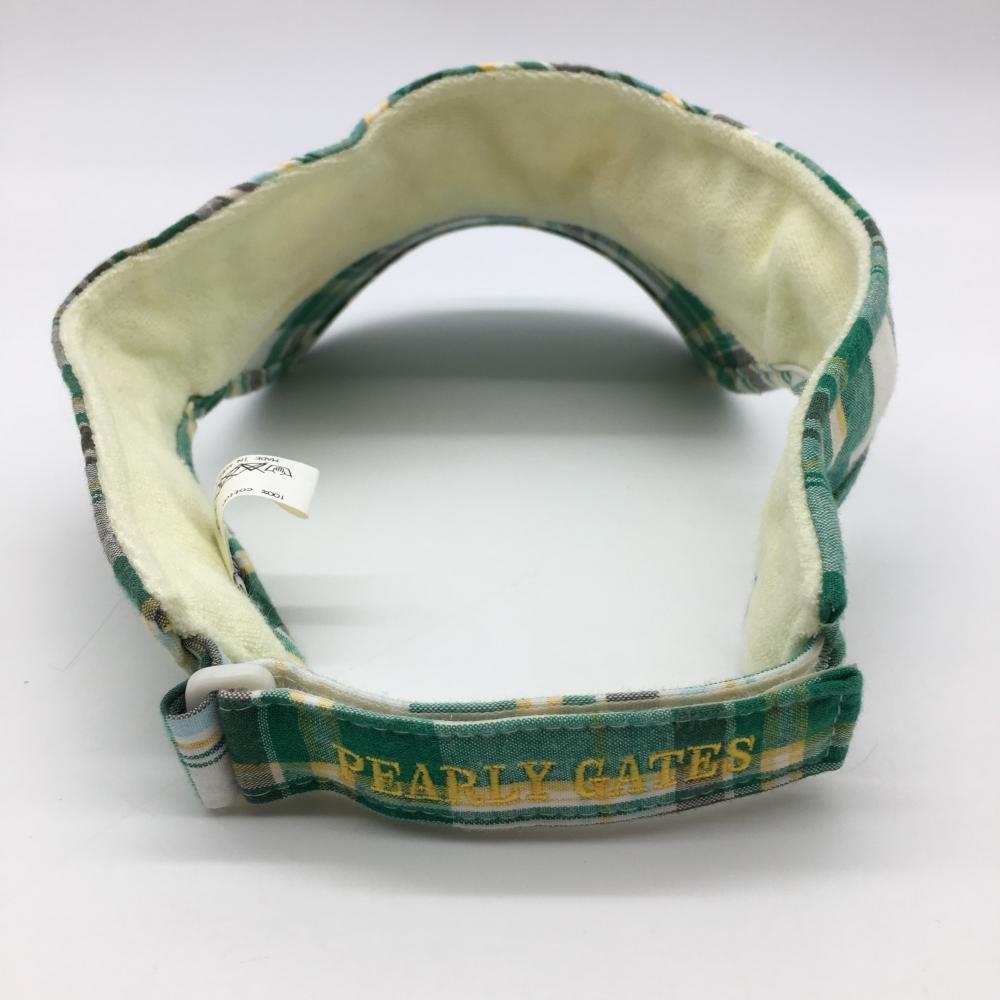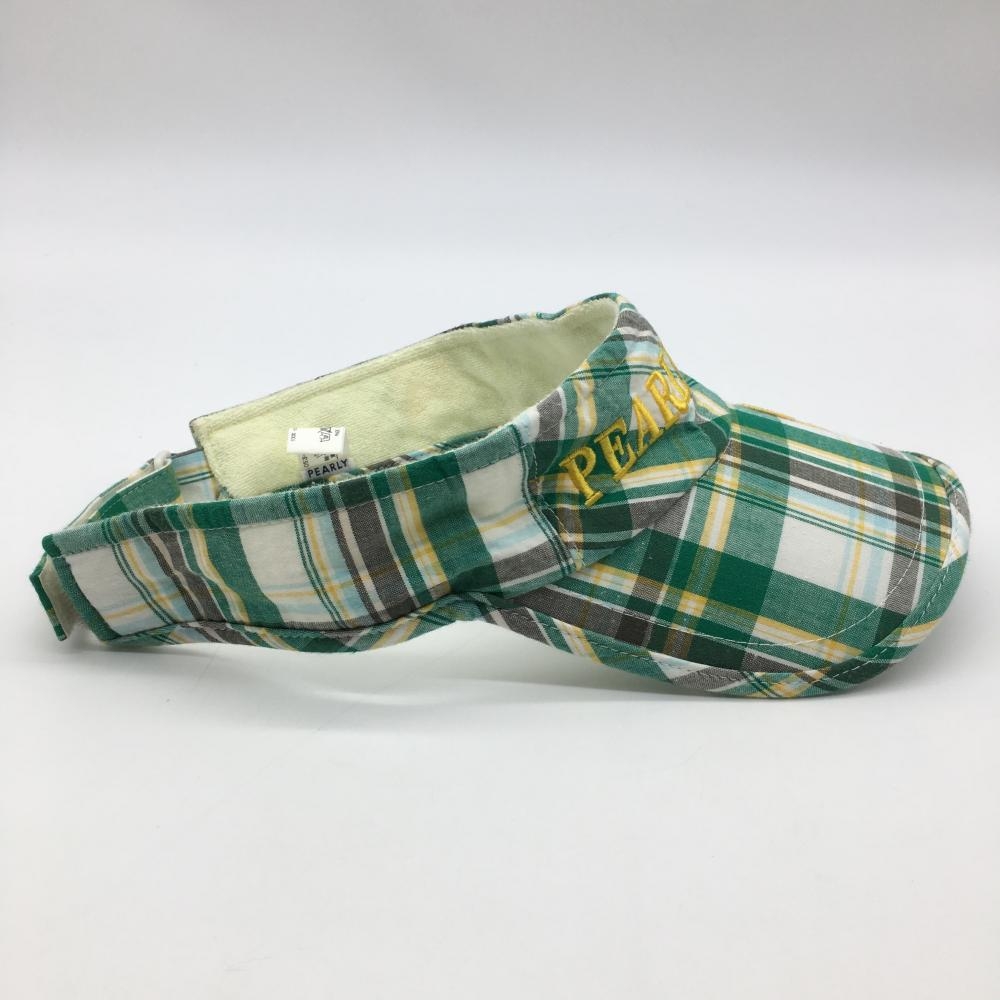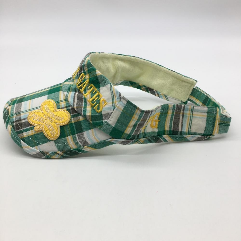 【美品】パーリーゲイツ サンバイザー グリーン×イエロー チェック ゴルフウェア PEARLY GATES