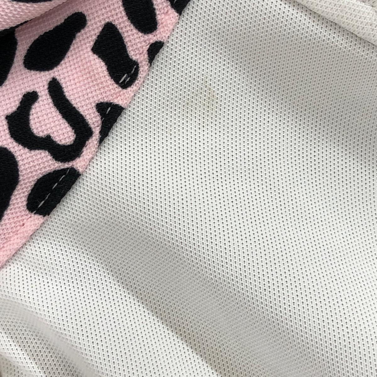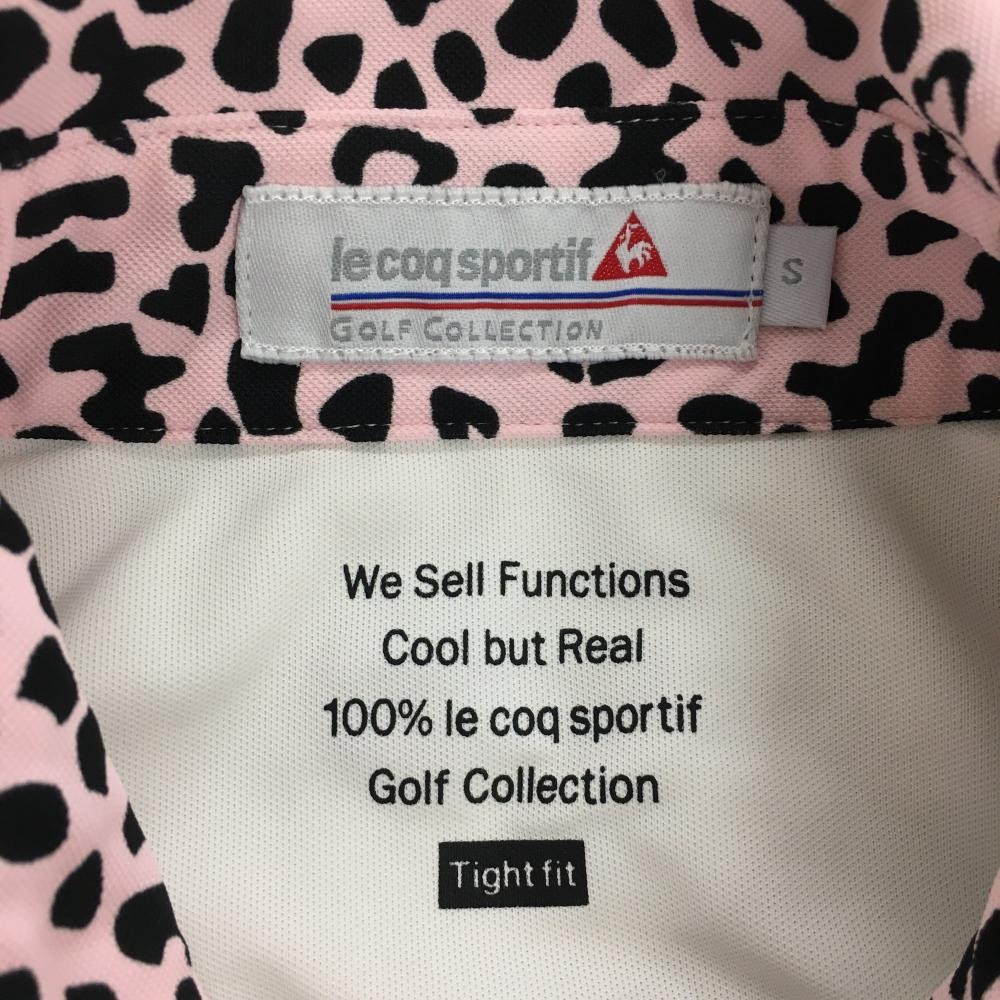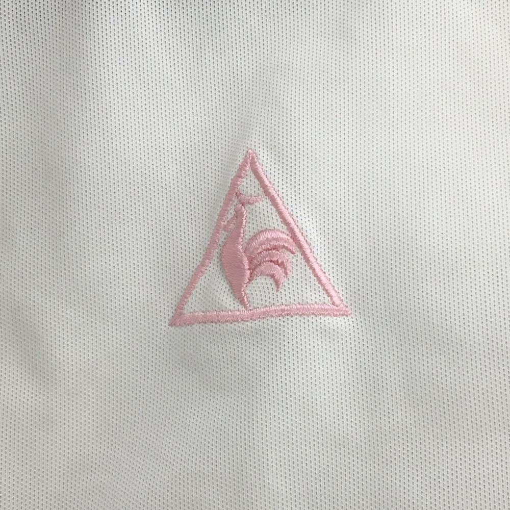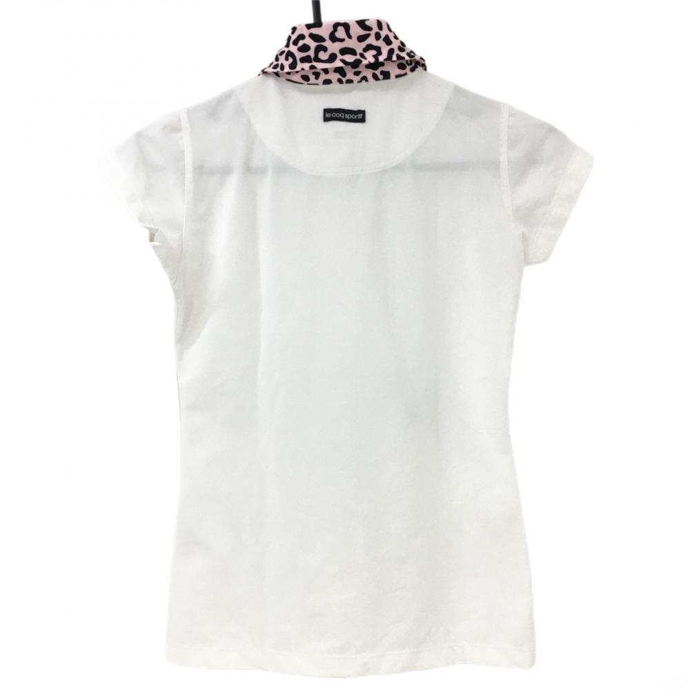 【超美品】ルコック 半袖ポロシャツ 白×ピンク 襟レオパード柄 レディース S ゴルフウェア le coq sportif