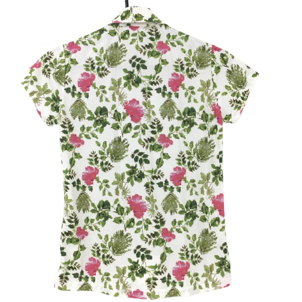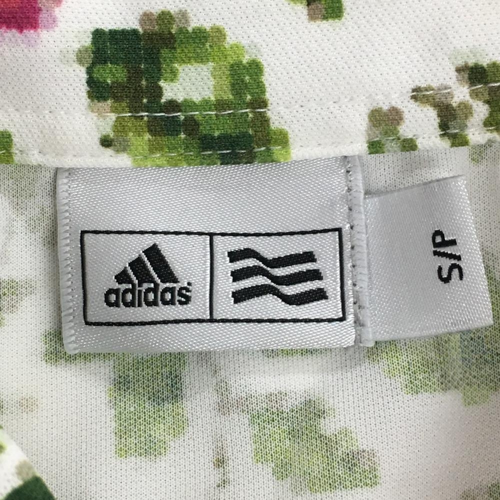 【超美品】アディダス 半袖ポロシャツ 白×グリーン×ピンク 花柄 レディース S/P ゴルフウェア adidas