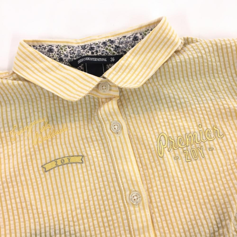 【超美品】ゾーイ 半袖シャツ イエロー×白 ストライプ サッカー生地 レディース 36(S) ゴルフウェア ZOY