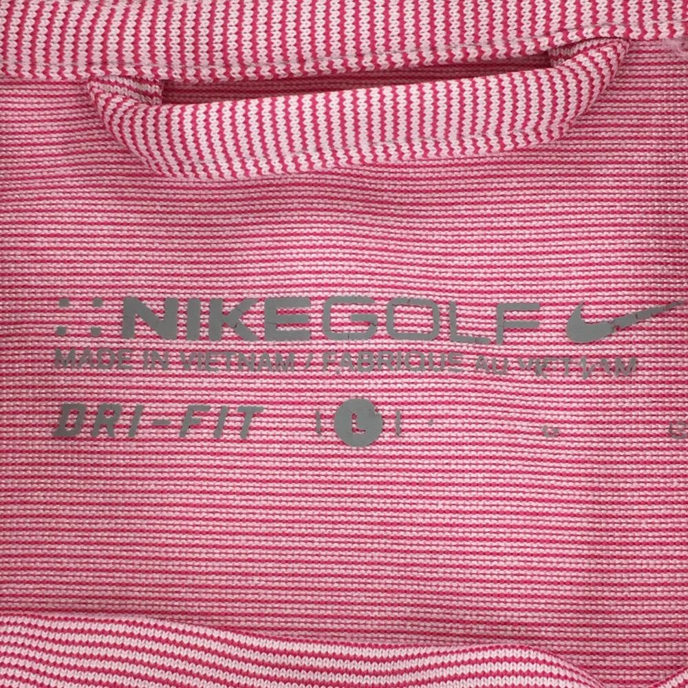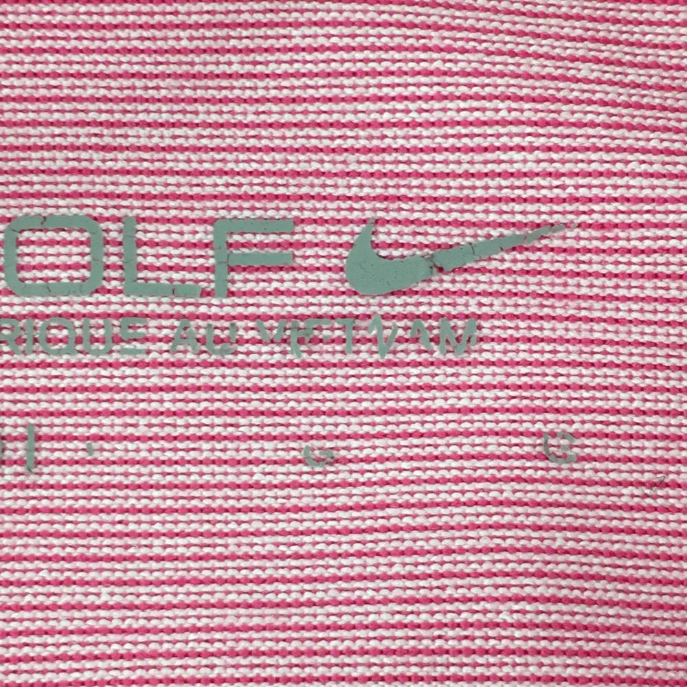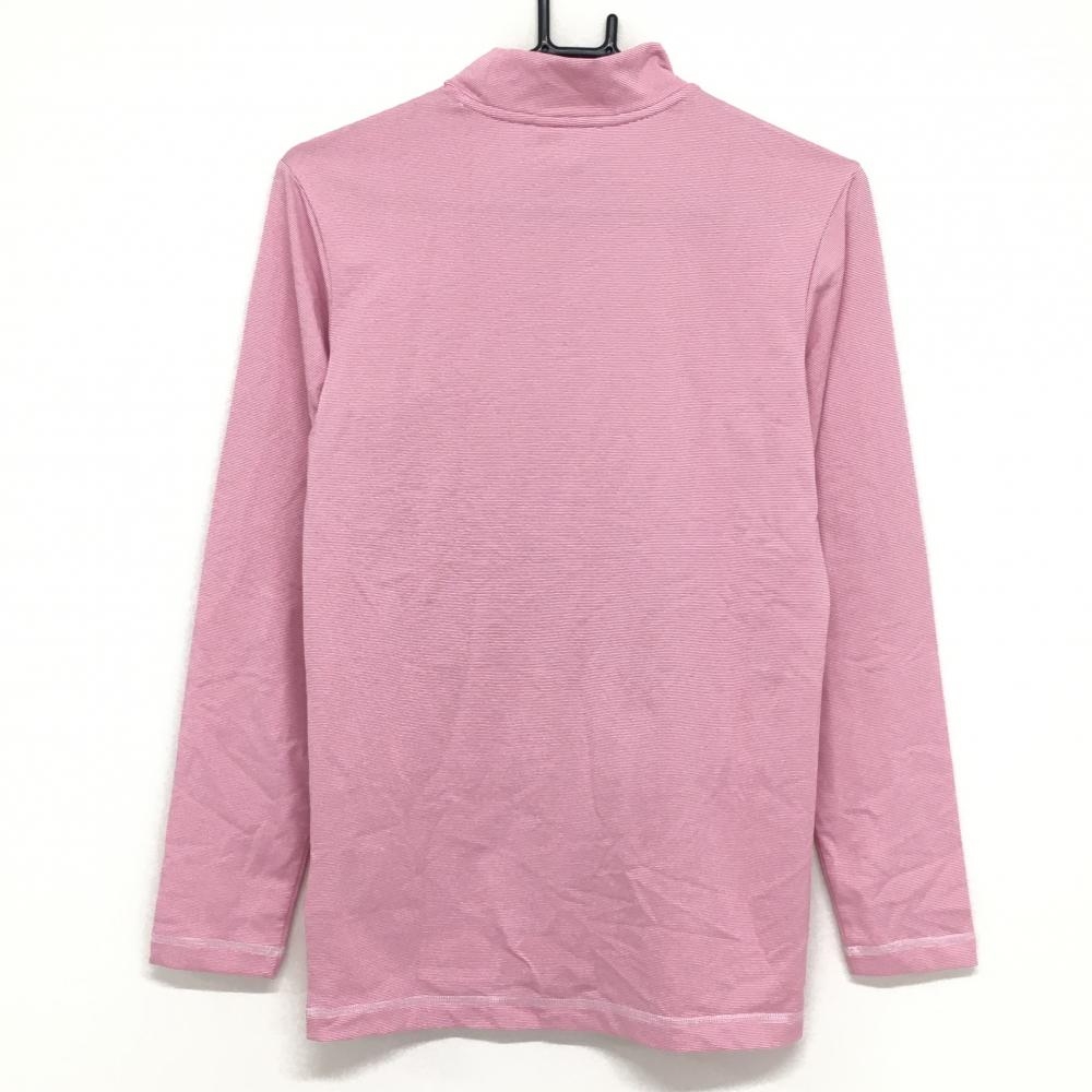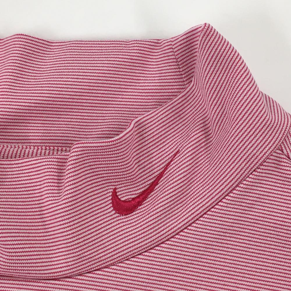 【美品】ナイキゴルフ 長袖ハイネックシャツ ピンク×白 ボーダー ロゴ刺しゅう DRI-FIT メンズ L ゴルフウェア NIKE