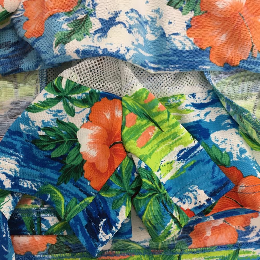 【超美品】ルコック スカート ライトブルー×オレンジ ハイビスカス柄 レディース 9 ゴルフウェア 2023年モデル le coq sportif