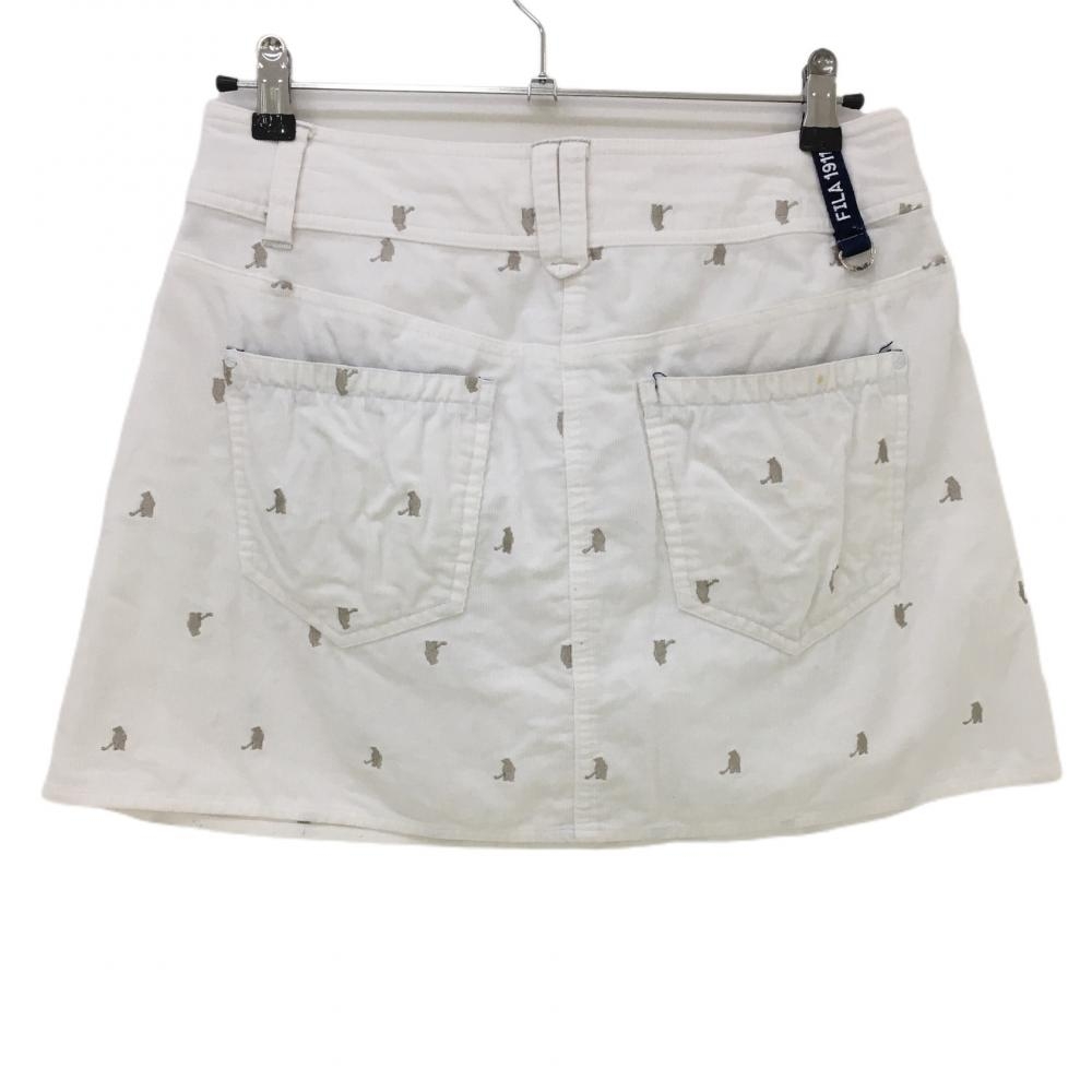 フィラゴルフ スカート 白×ライトグレー コーデュロイ クマ総柄 レディース L ゴルフウェア FILA GOLF