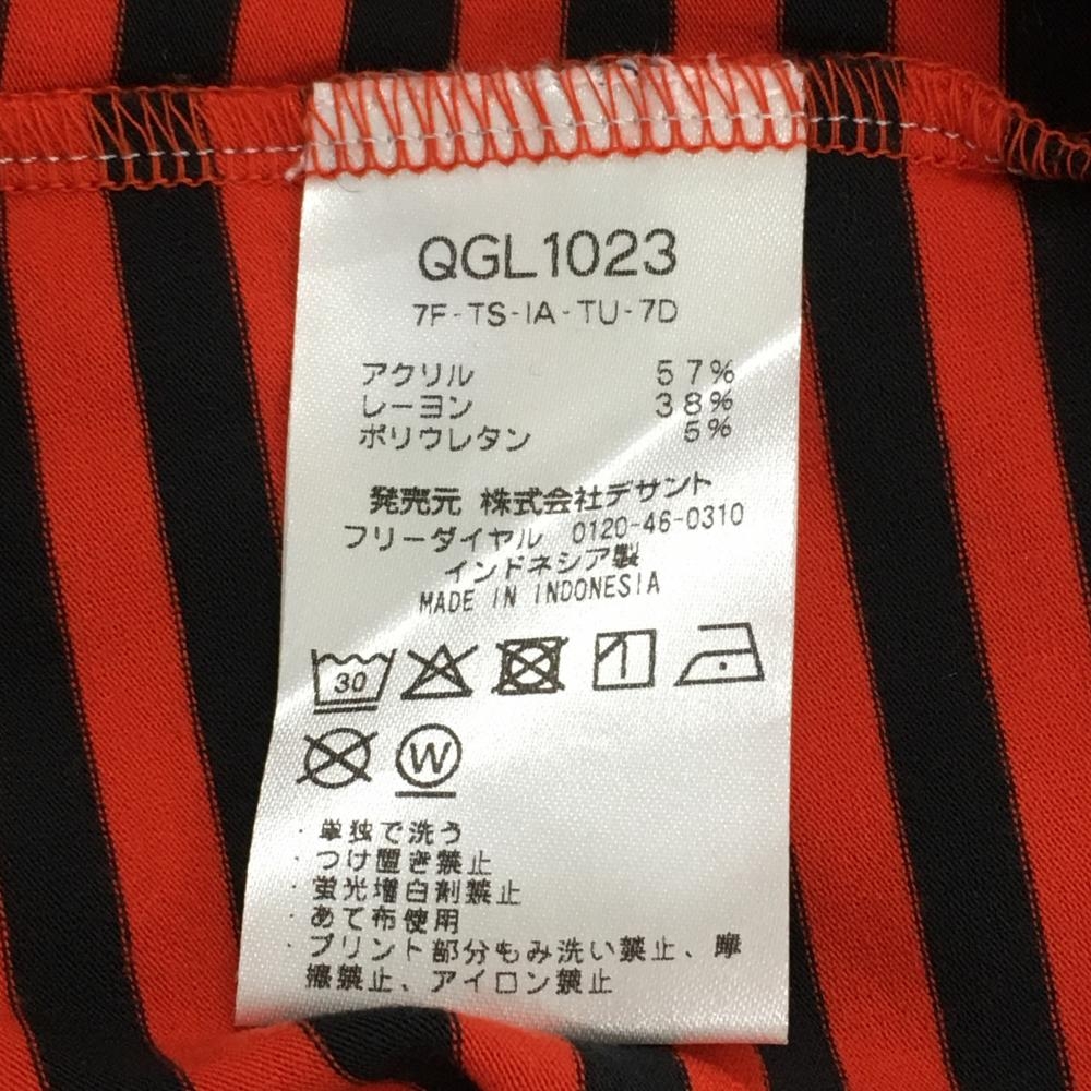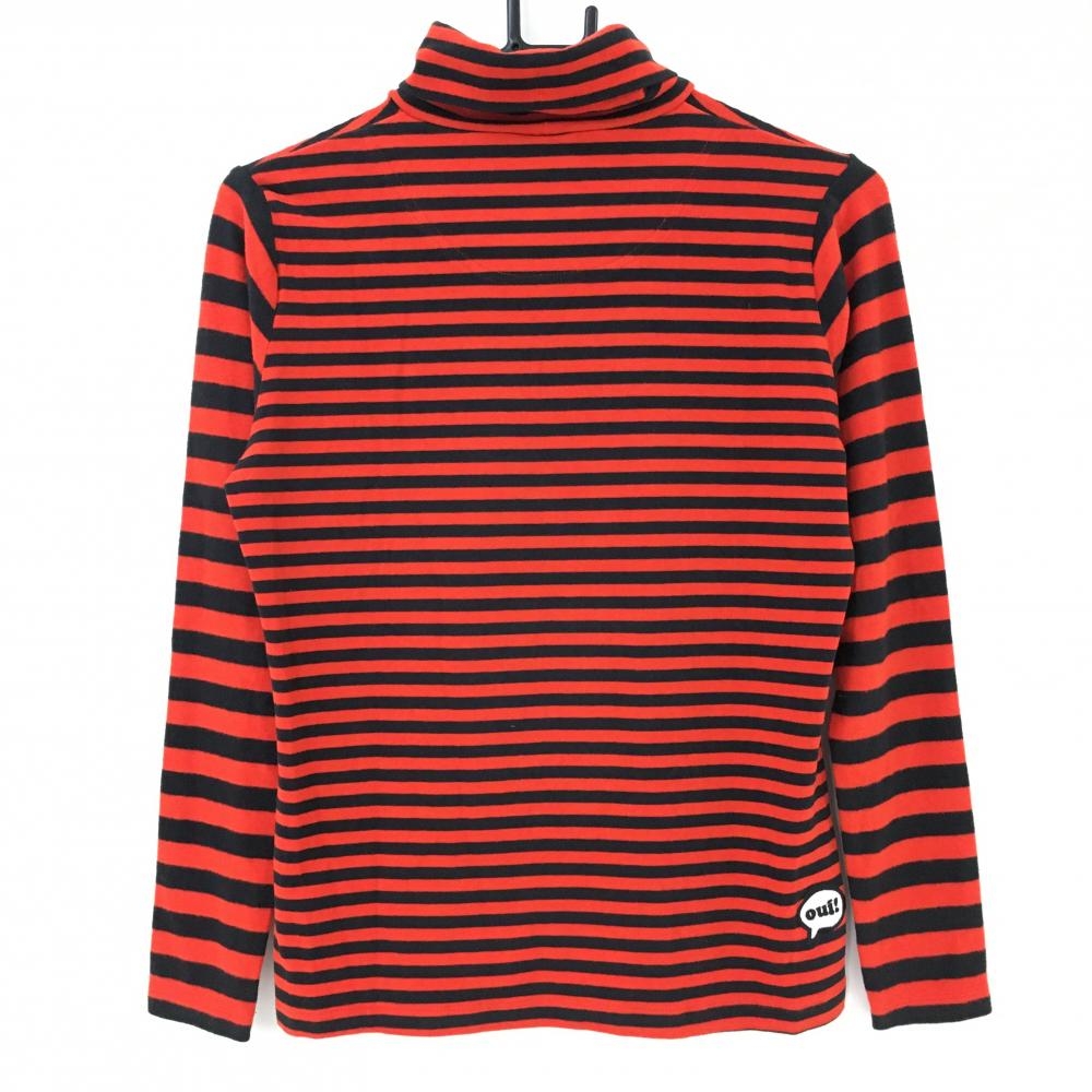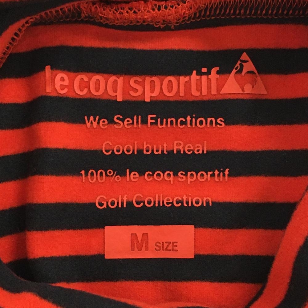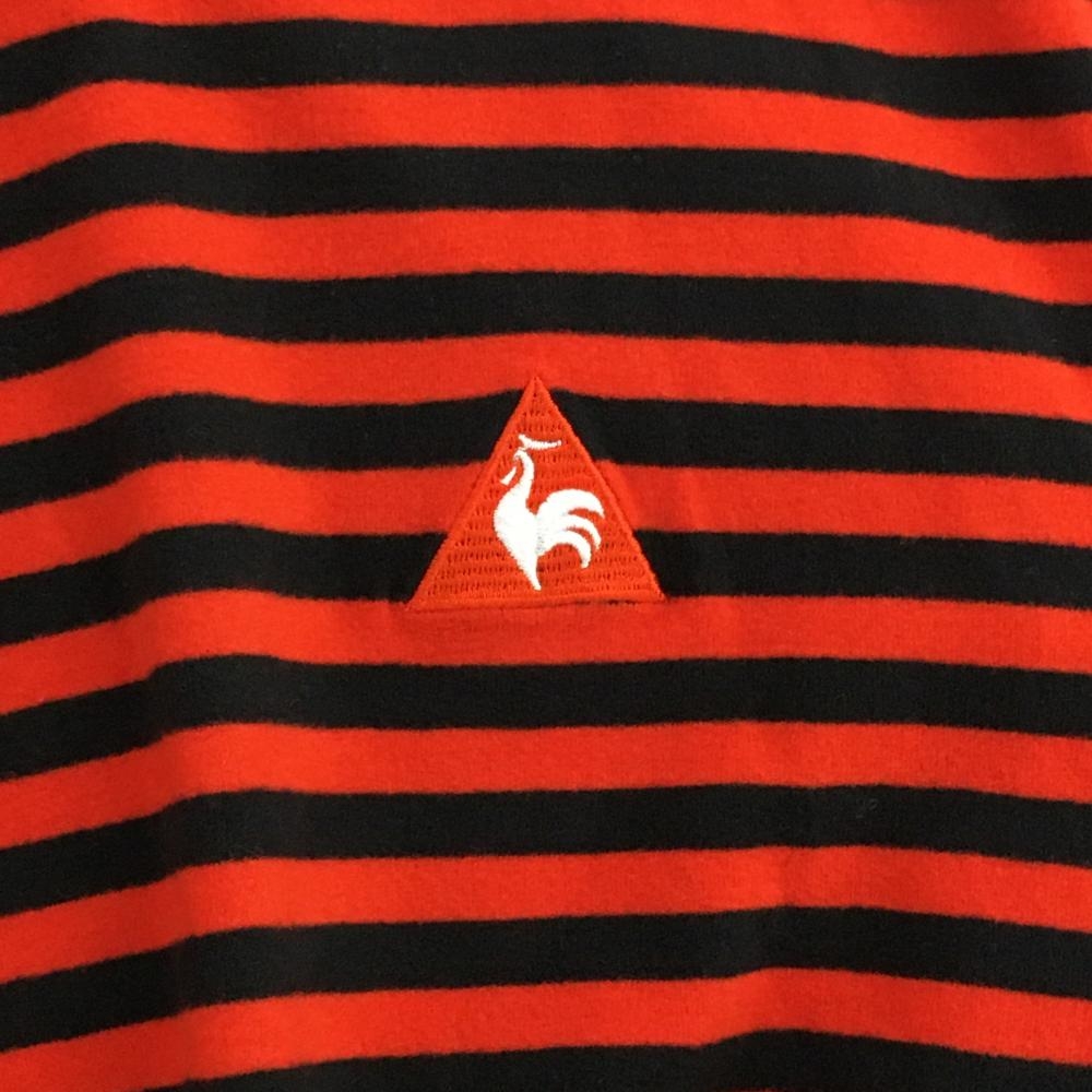 【美品】ルコック 長袖ハイネックシャツ レッド×ネイビー ボーダー柄 ロゴ刺しゅう 表部起毛 レディース M ゴルフウェア le coq sportif