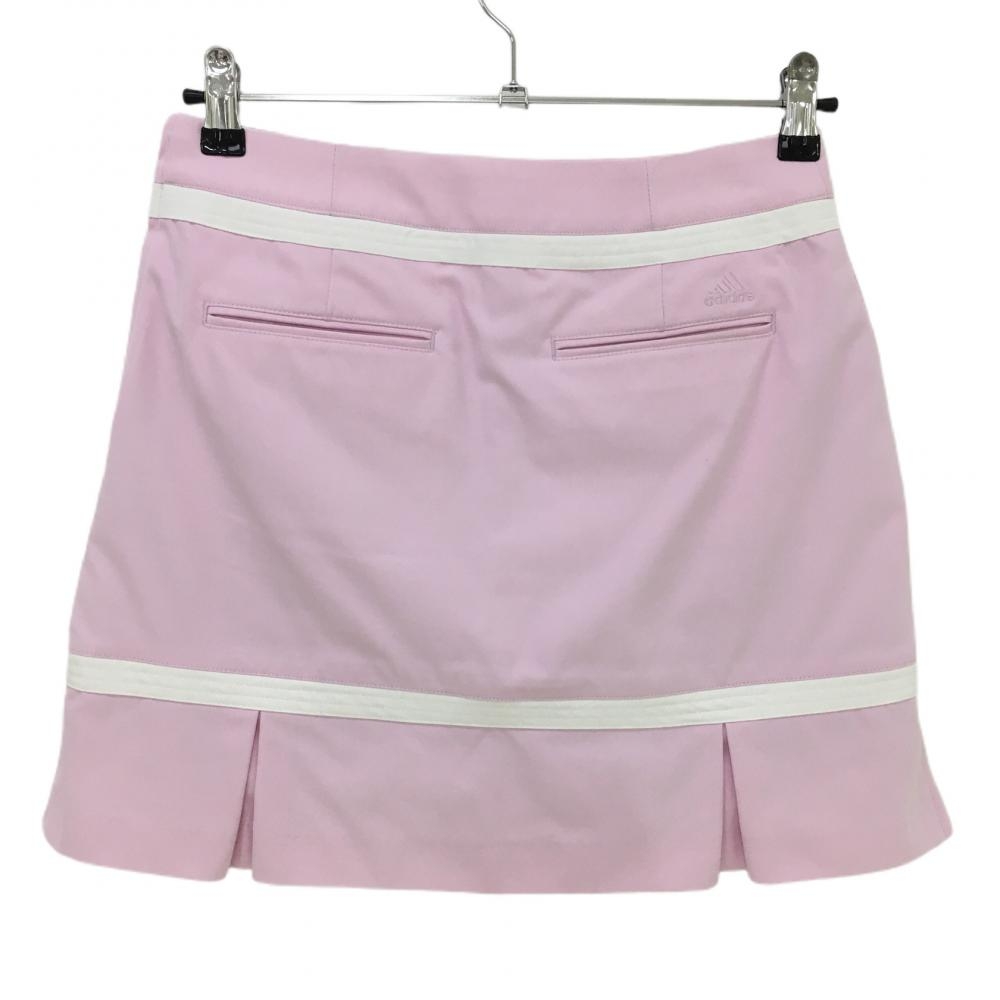 【超美品】アディダス スカート ピンク×白 ライン 裾スリット 内側インナーパンツ レディース S/P ゴルフウェア adidas