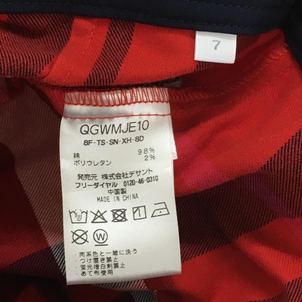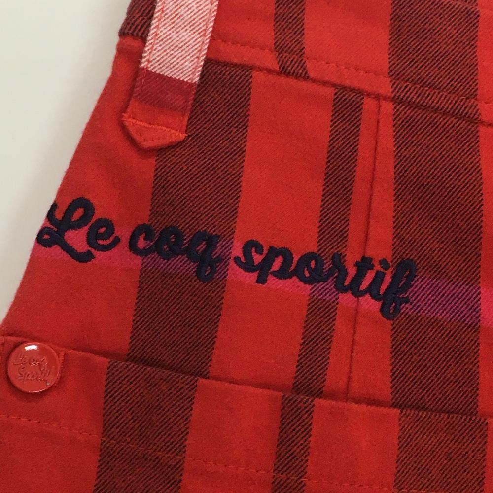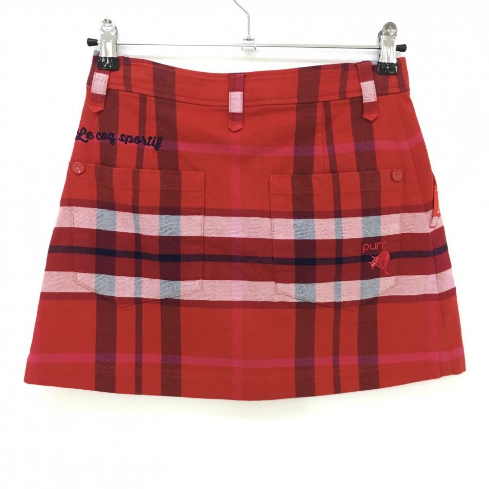 【超美品】ルコック スカート レッド×ネイビー チェック ロゴ刺しゅう ストレッチ レディース 7 ゴルフウェア le coq sportif