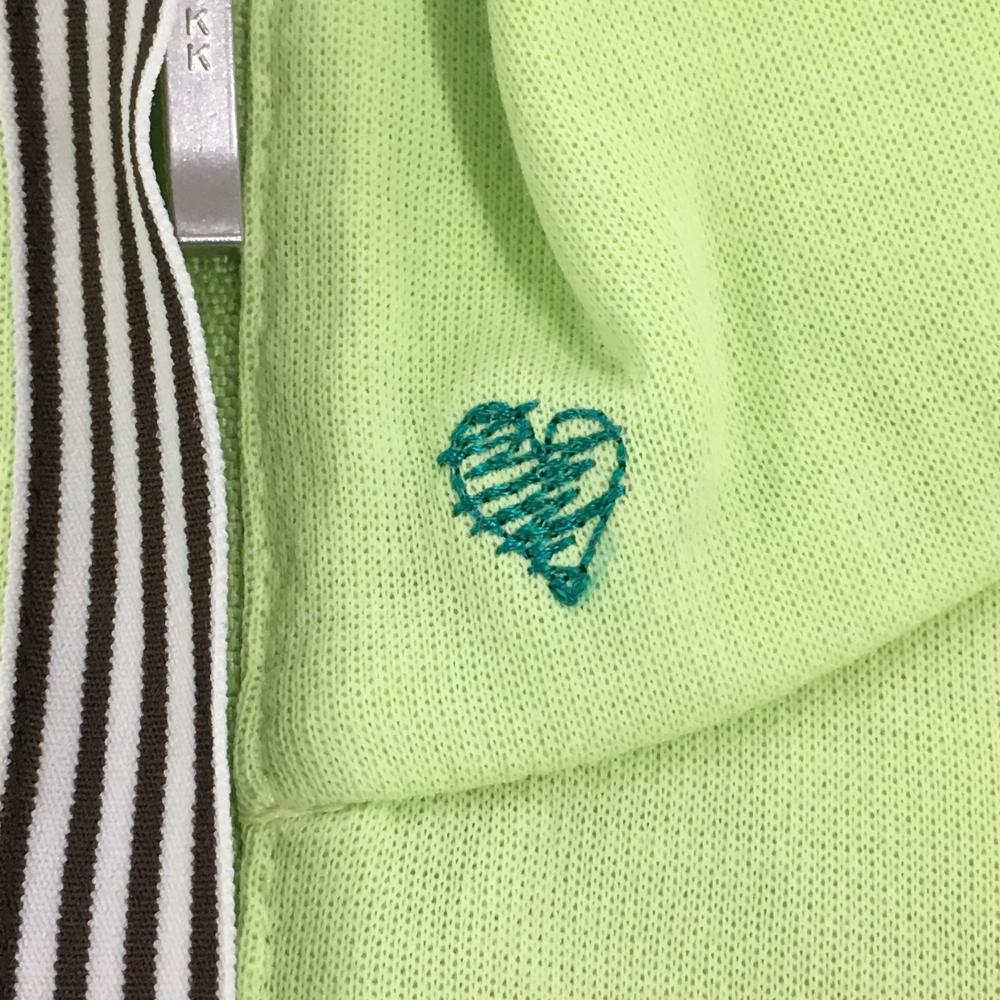 【超美品】ビバハート ノースリーブハイネックシャツ ライトグリーン ハーフジップ ロゴ刺しゅう レディース 40 ゴルフウェア VIVA HEART