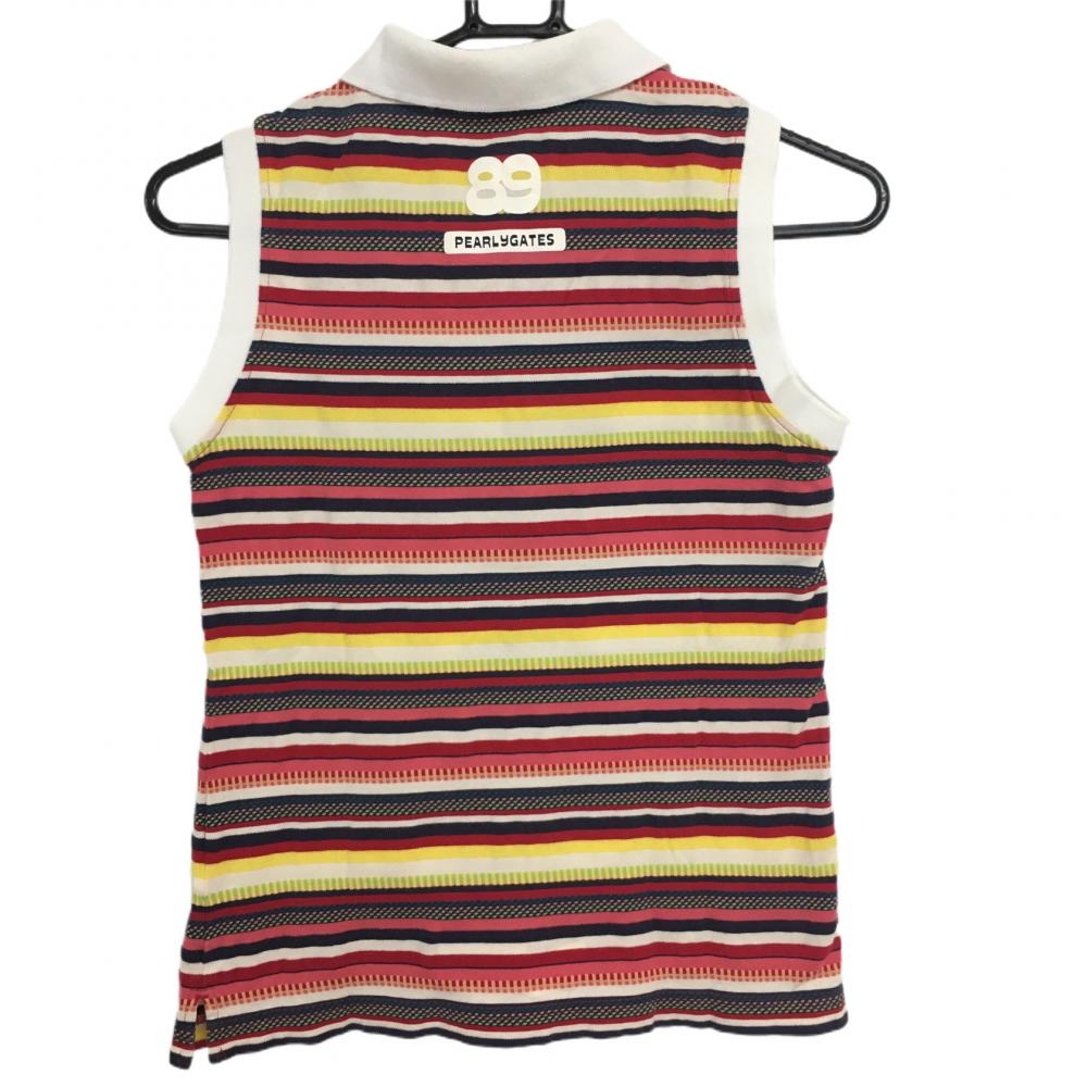 パーリーゲイツ ノースリーブポロシャツ レッド×ネイビー×イエロー ボーダー レディース 0(S) ゴルフウェア PEARLY GATES
