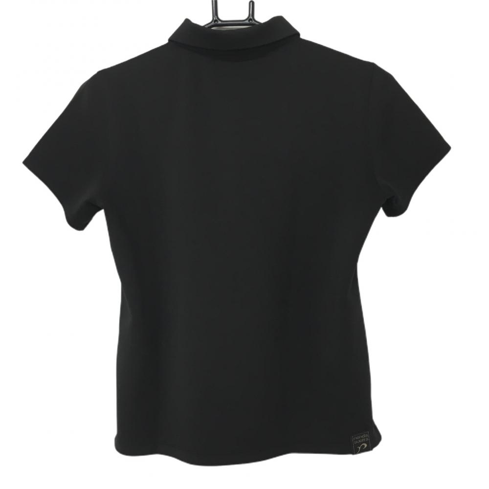 【美品】リエンダスエルタ 半袖ポロシャツ 黒 ロゴ刺しゅう ストレッチ レディース M ゴルフウェア rienda suelta