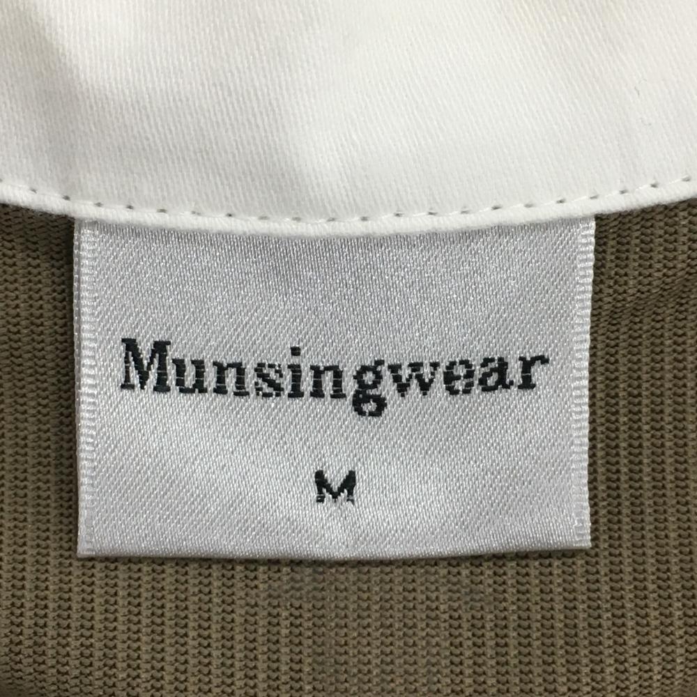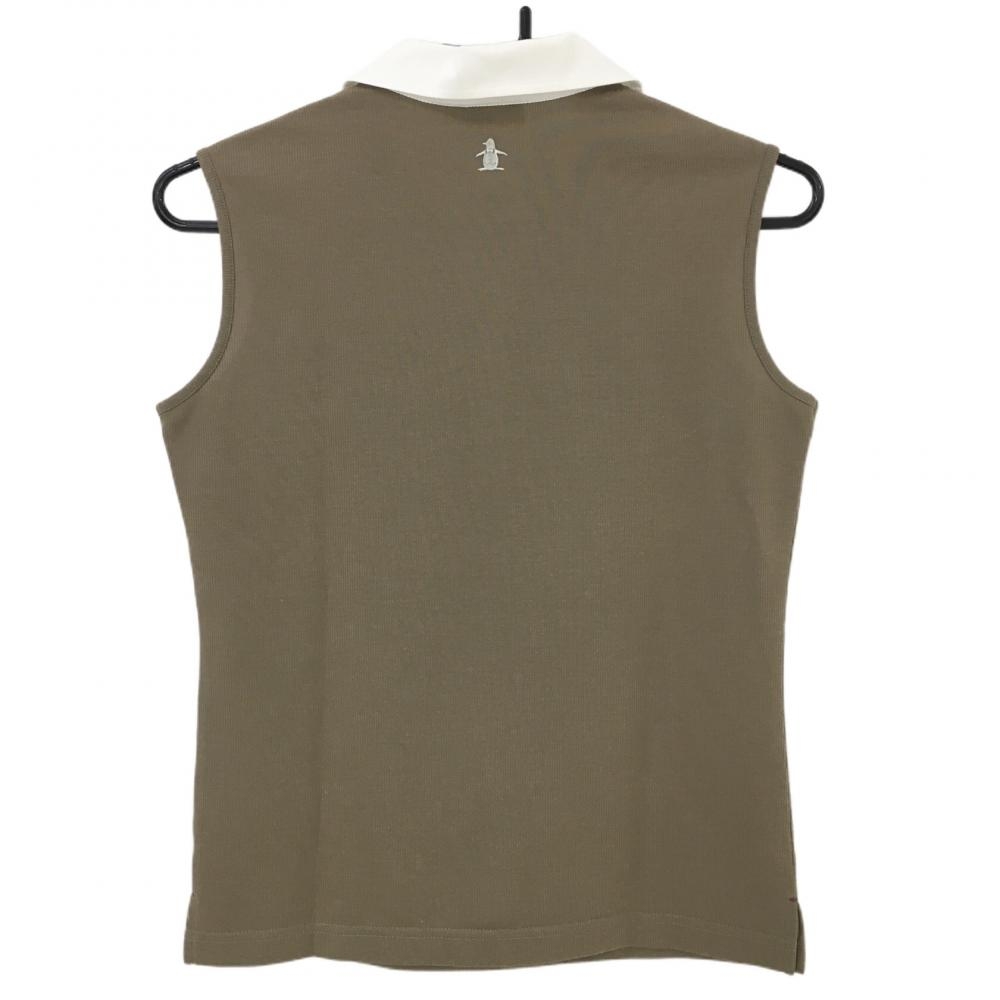 【美品】マンシングウェア ノースリーブポロシャツ ブラウン×白 ストライプ織生地 スナップボタン レディース M ゴルフウェア Munsingwear