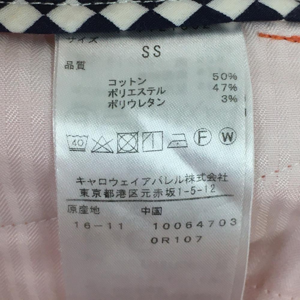 【美品】キャロウェイ パンツ オレンジ ウエスト裏メッシュ 後ろポケット口リボン レディース SS ゴルフウェア Callaway