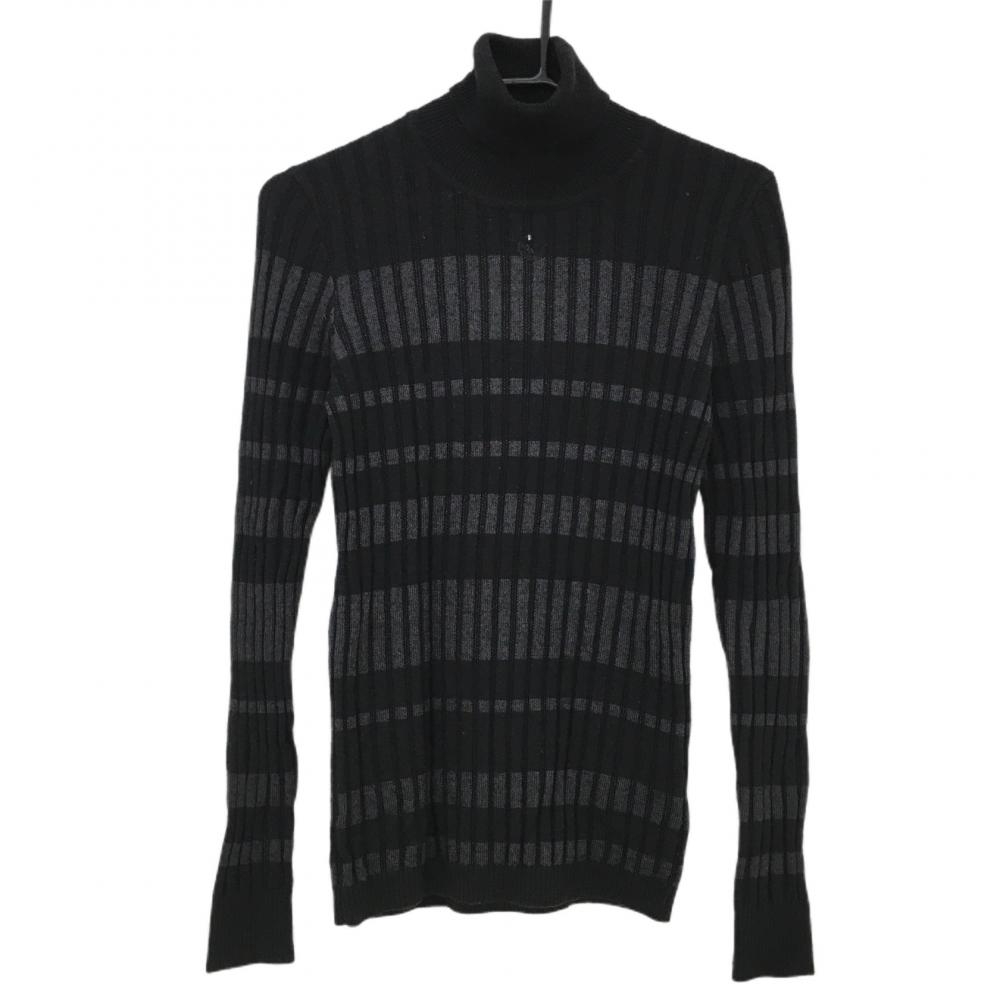 【超美品】キャロウェイ タートルネックセーター 黒×グレー ボーダー調 リブ ラインストーン レディース M ゴルフウェア Callaway
