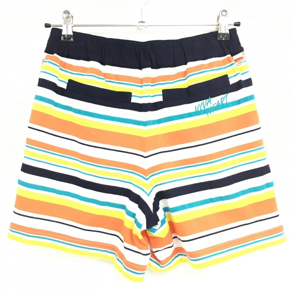 【超美品】ビバハート キュロットスカート 白×ネイビー×オレンジ ボーダー 裏地メッシュ レディース 38 ゴルフウェア VIVA HEART