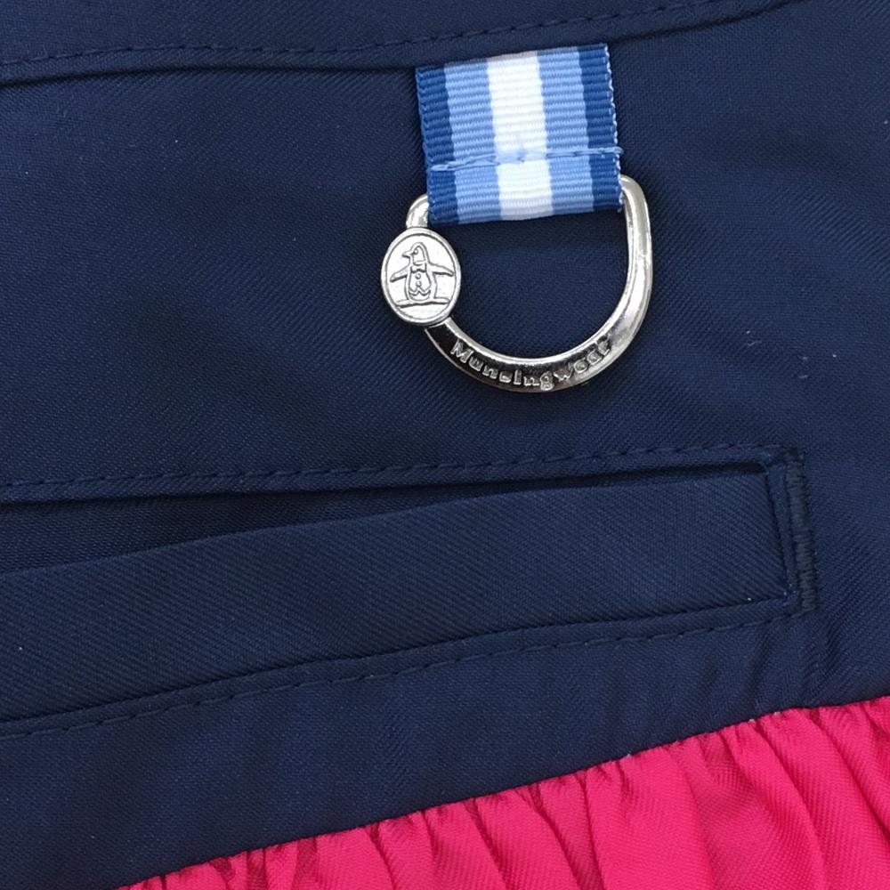 【新品】マンシングウェア プリーツスカート ピンク×ネイビー 裾ボーダー 裏地付 レディース 11 ゴルフウェア Munsingwear