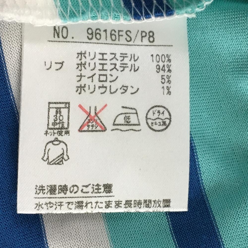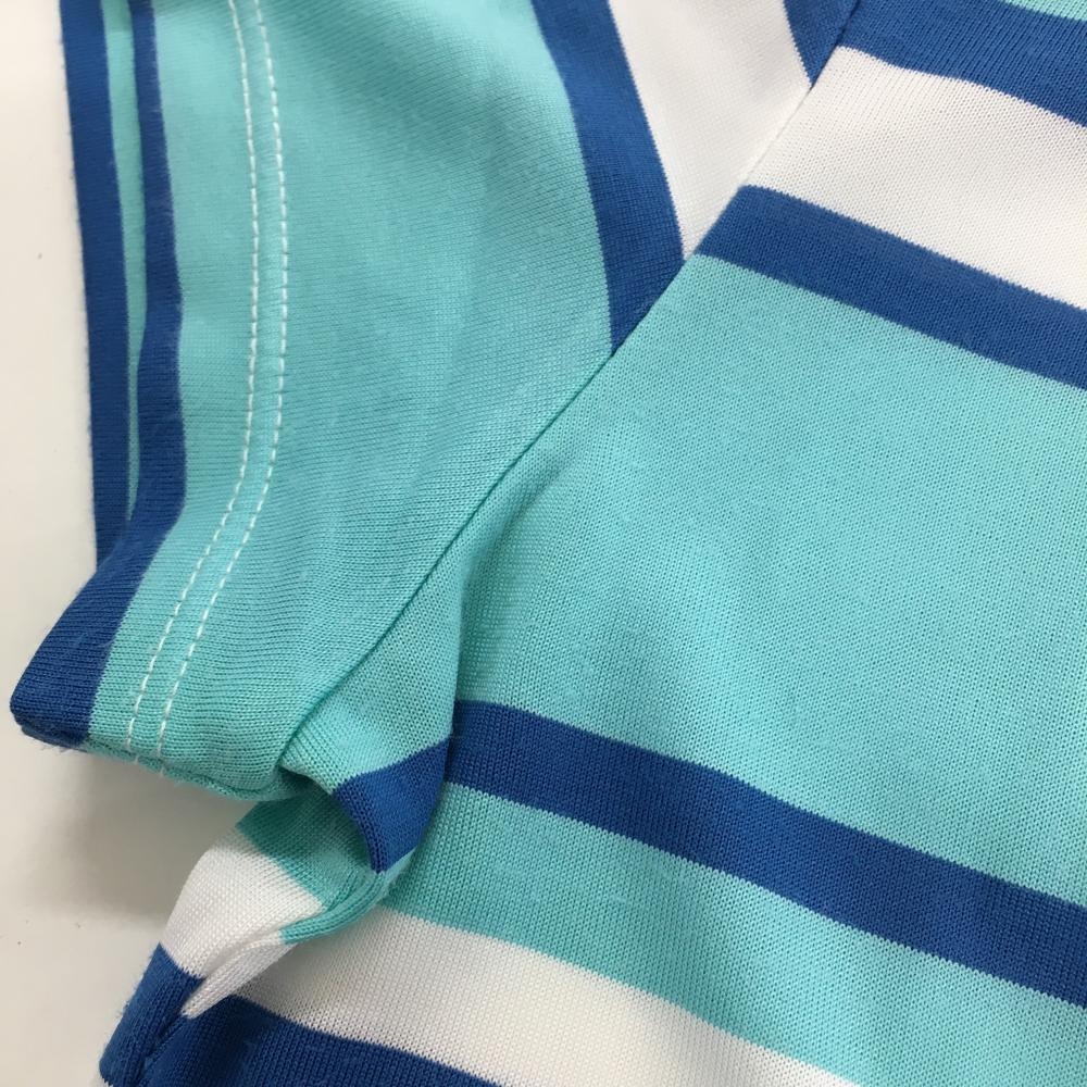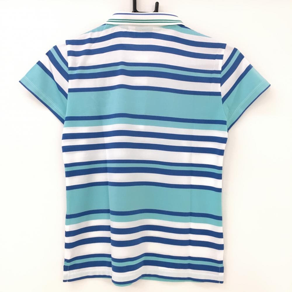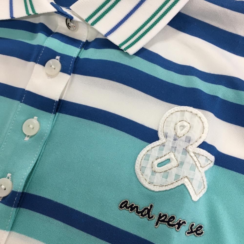 【美品】アンパスィ 半袖ポロシャツ ライトブルー×ブルー ボーダー柄 ロゴワッペン レディース M ゴルフウェア and per se