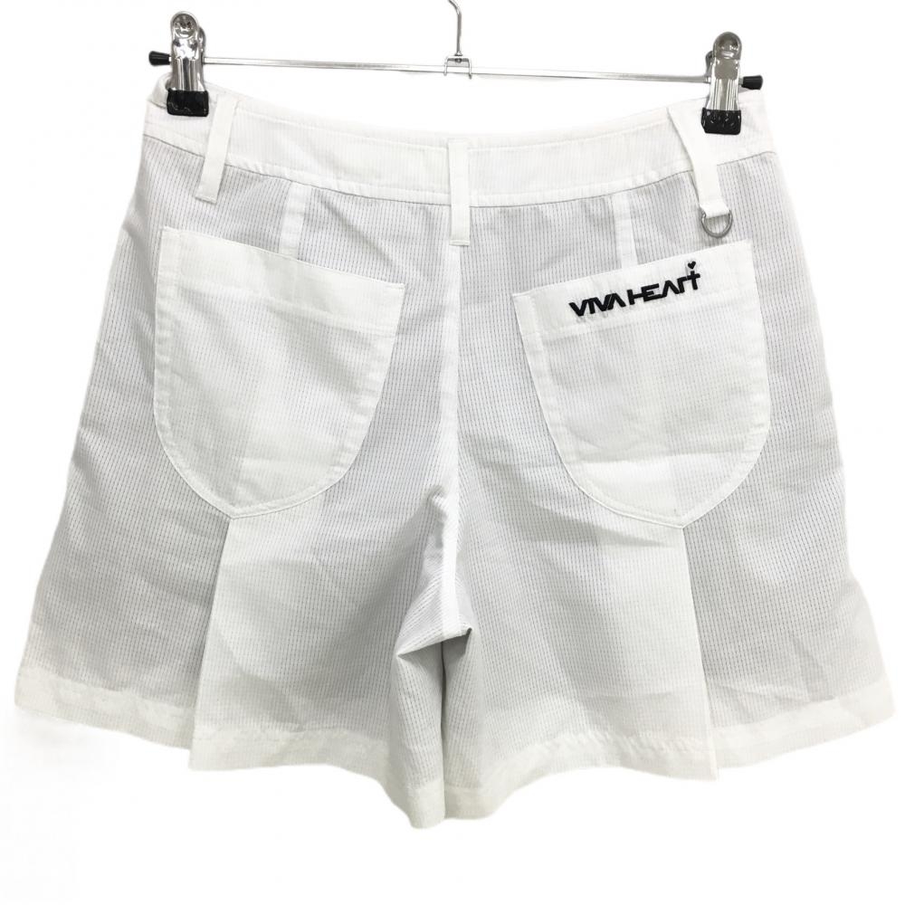 【美品】ビバハート キュロットスカート 白 裏地付き メッシュ調 ロゴ刺しゅう レディース 40 ゴルフウェア VIVA HEART