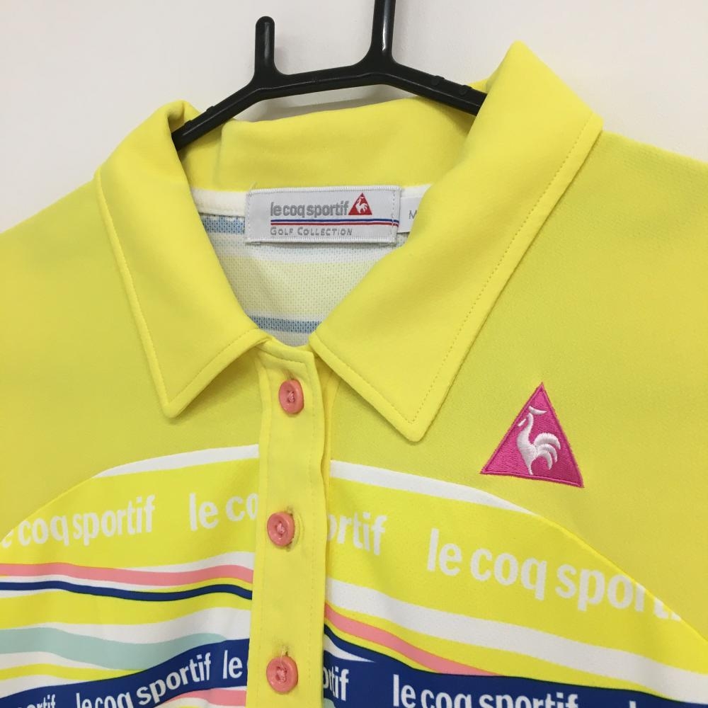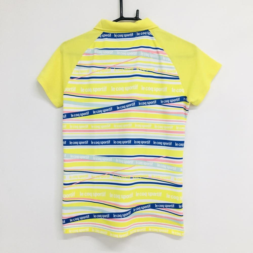 【超美品】ルコック 半袖ポロシャツ イエロー×ブルー ロゴボーダー ロゴ刺しゅう レディース M ゴルフウェア le coq sportif