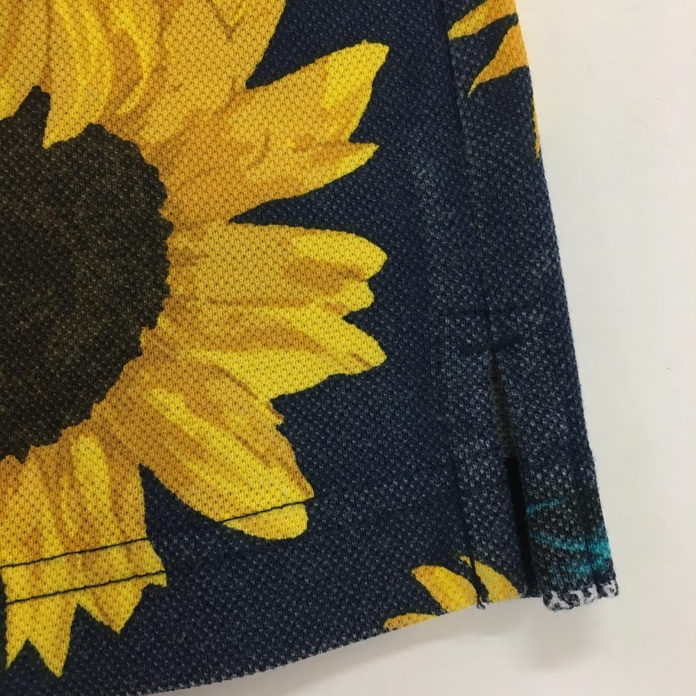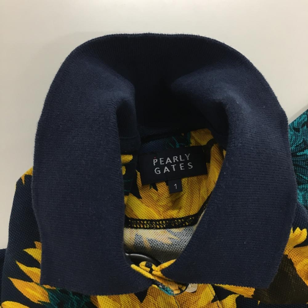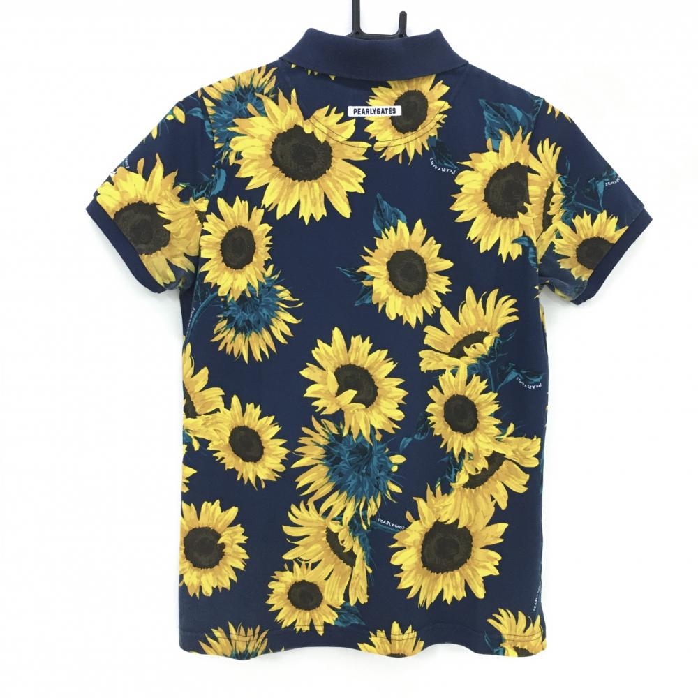 パーリーゲイツ 半袖ポロシャツ ネイビー×イエロー ヒマワリ柄 花柄 日本製 レディース 1(M) ゴルフウェア PEARLY GATES