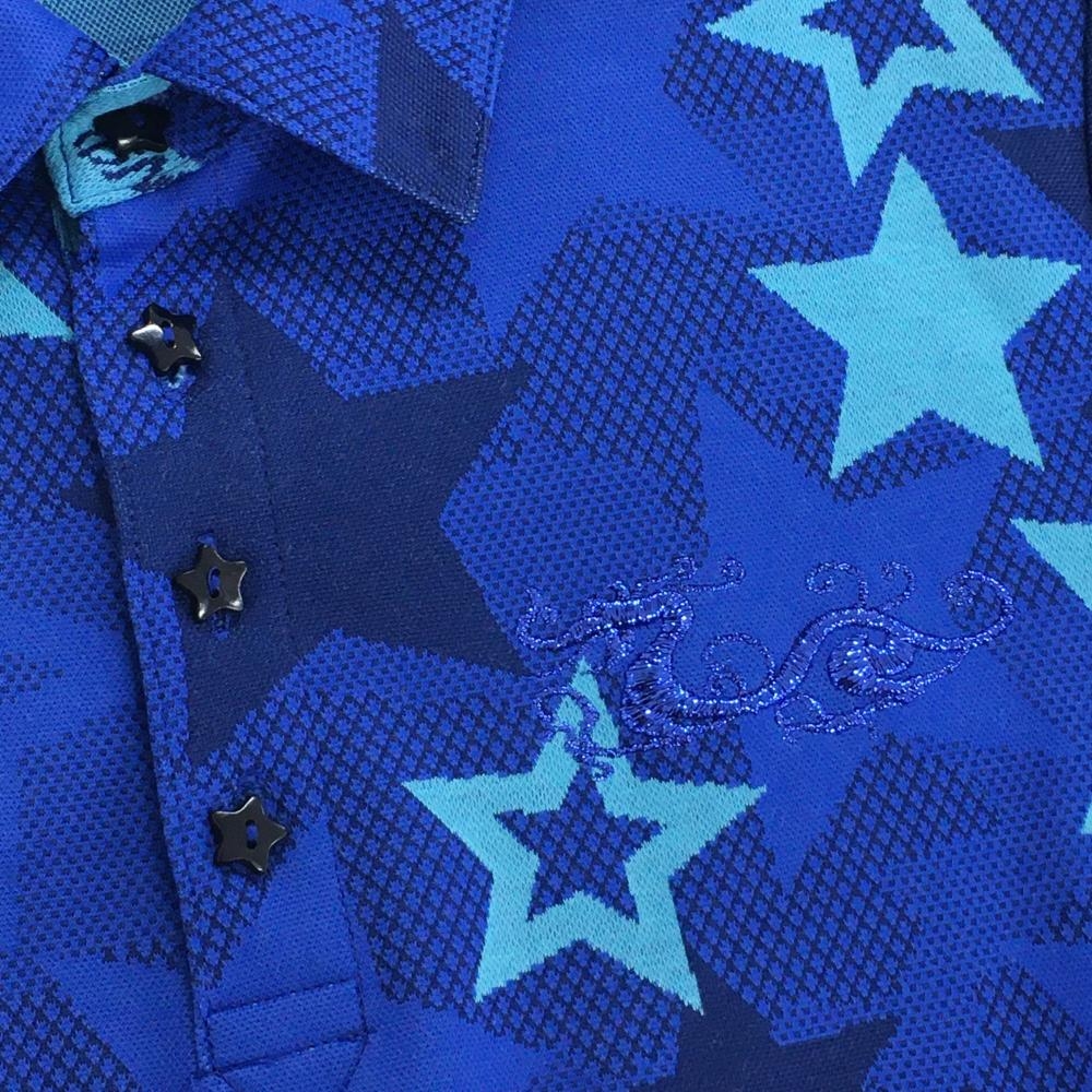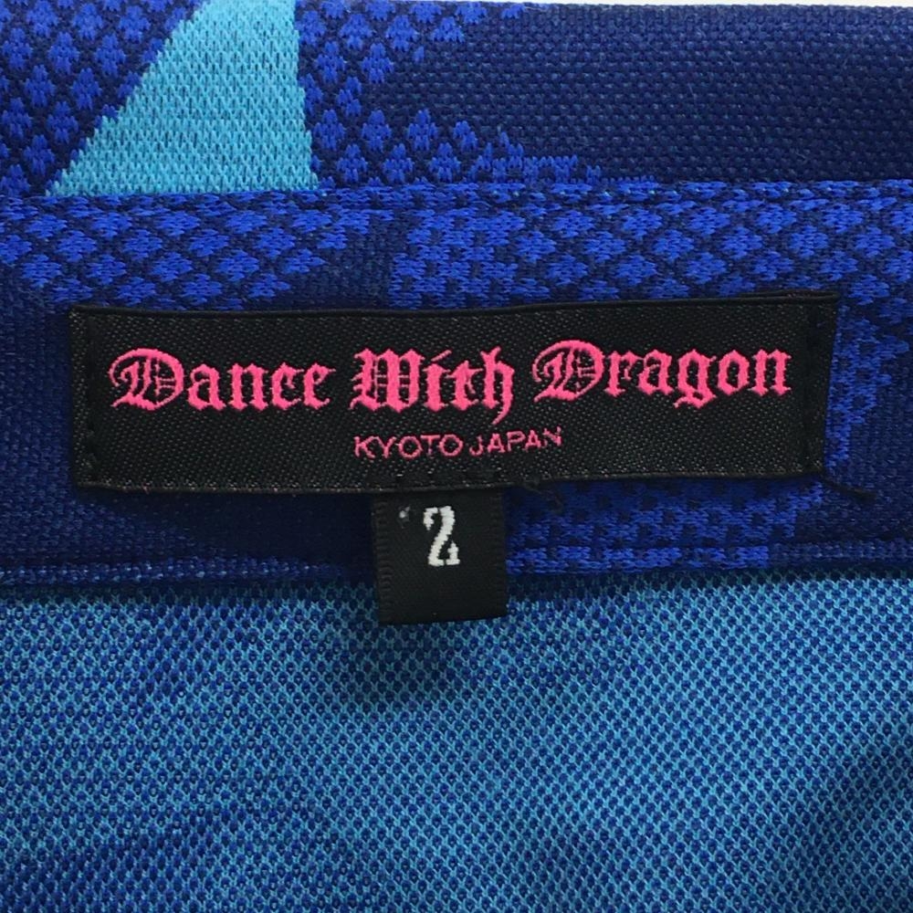 【美品】ダンスウィズドラゴン 半袖ポロシャツ ブルー×ライトブルー 星柄 レディース 2(M) ゴルフウェア Dance With Dragon