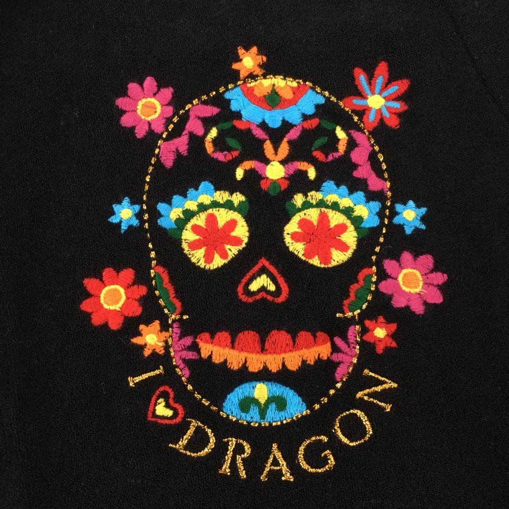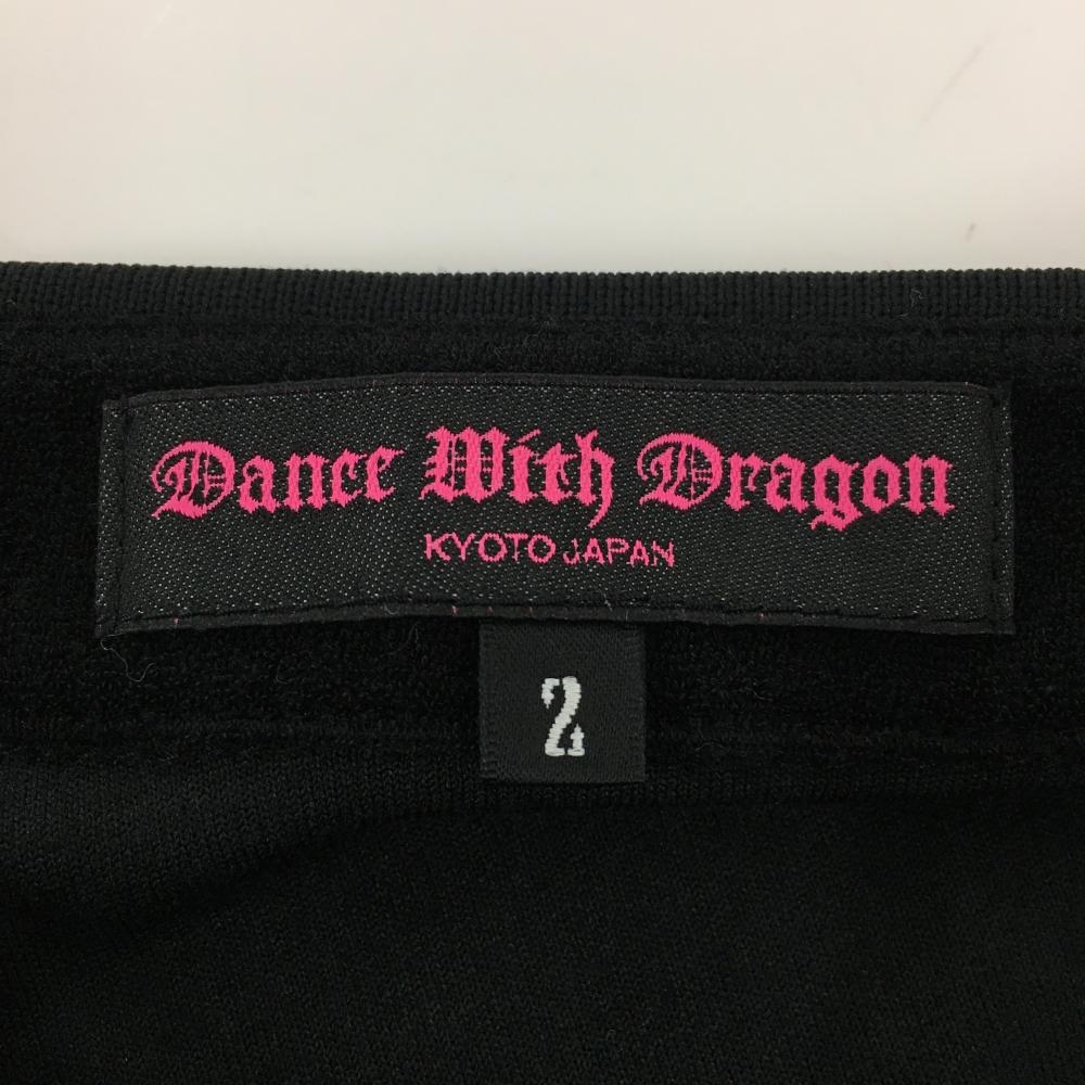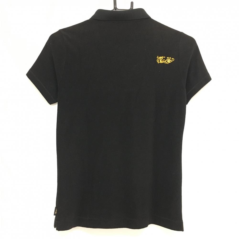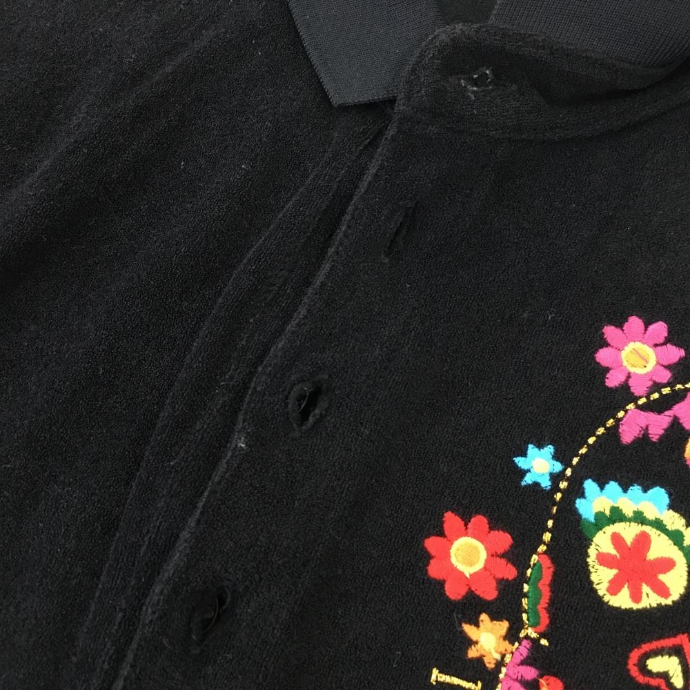 ダンスウィズドラゴン 半袖ポロシャツ 黒 パイル地 花模様スカル レディース 2(M) ゴルフウェア Dance With Dragon