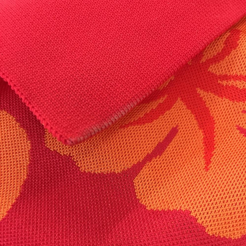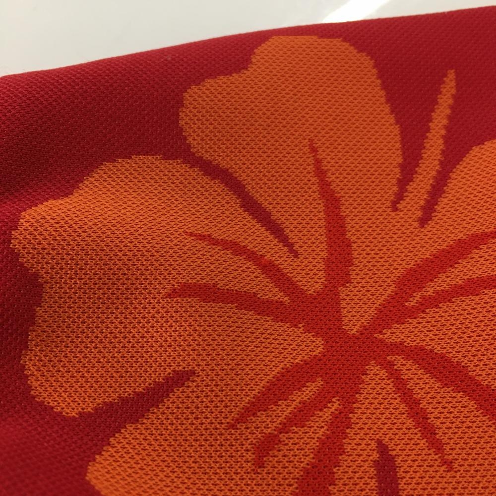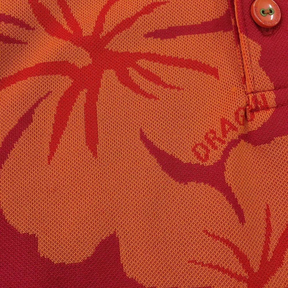 【美品】ダンスウィズドラゴン 半袖ポロシャツ レッド×オレンジ ハイビスカス柄 レディース 2(M) ゴルフウェア Dance With Dragon