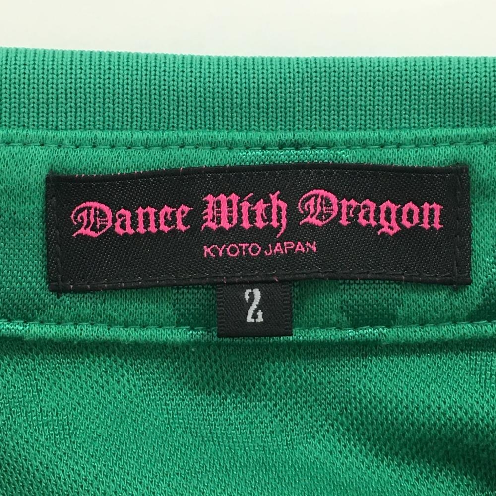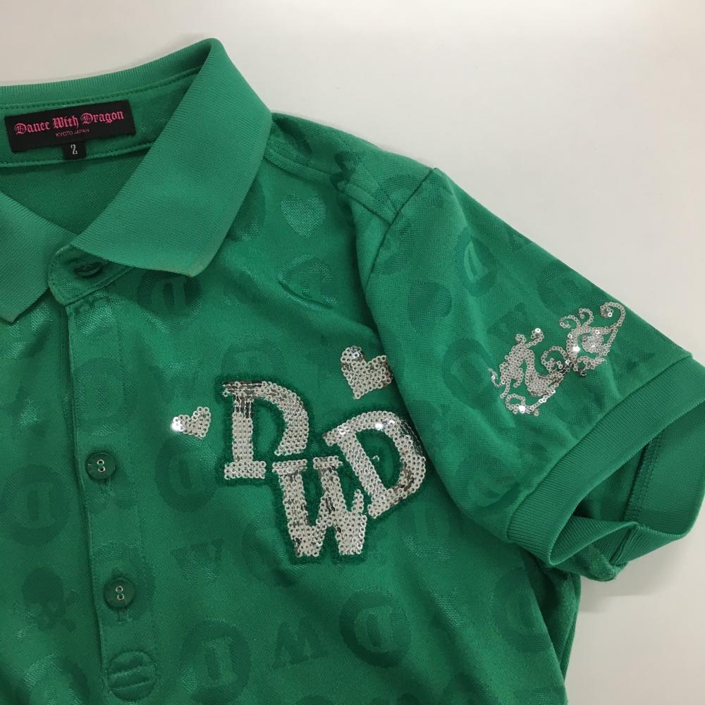 ダンスウィズドラゴン 半袖ポロシャツ グリーン ロゴ織生地 スパンコールロゴ レディース 2(M) ゴルフウェア Dance With Dragon