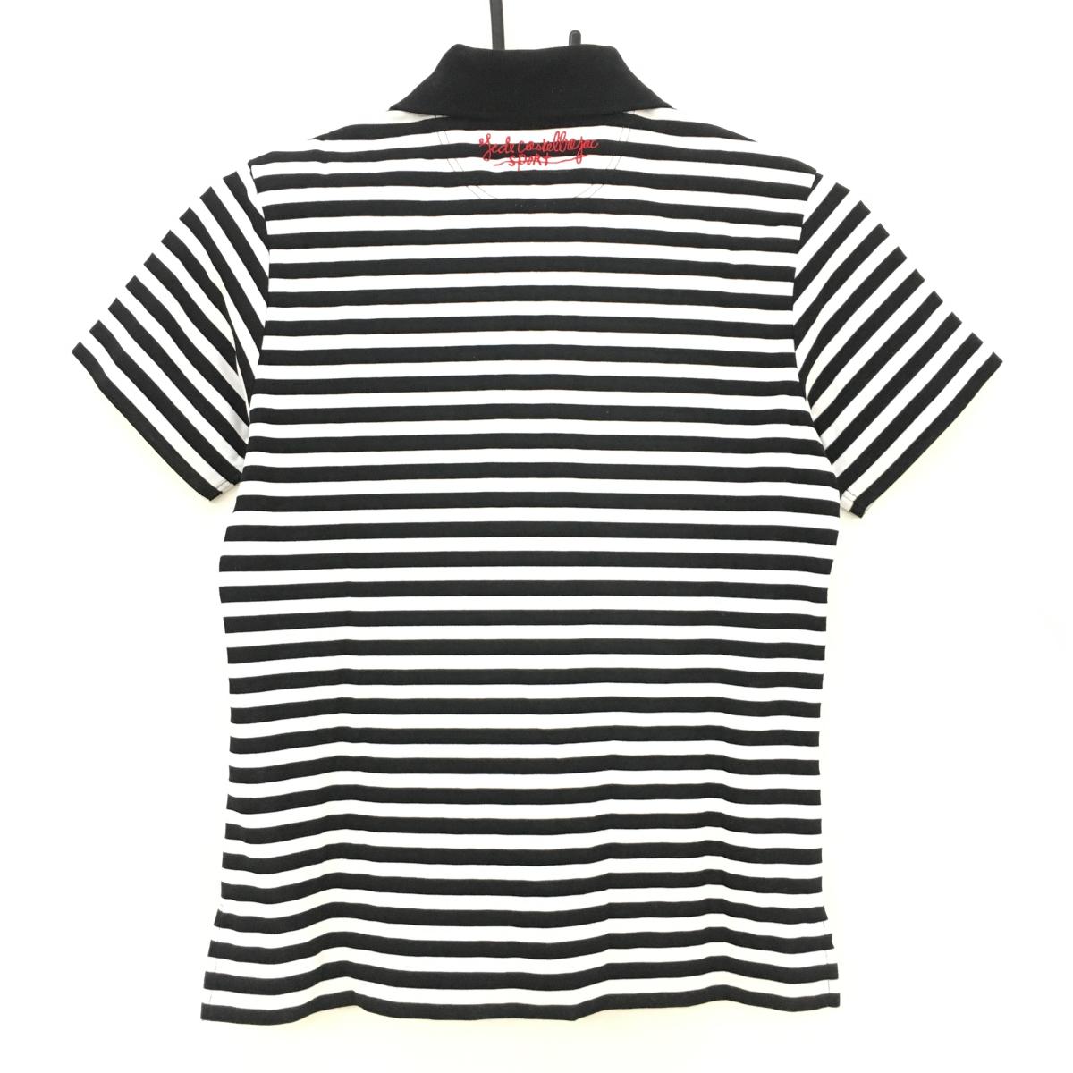 【美品】カステルバジャック 半袖ポロシャツ 白×黒 ボーダー柄 クマ刺しゅう レディース 1(S) ゴルフウェア CASTELBAJAC