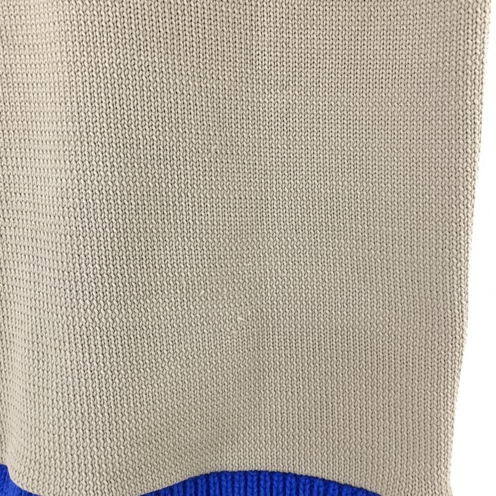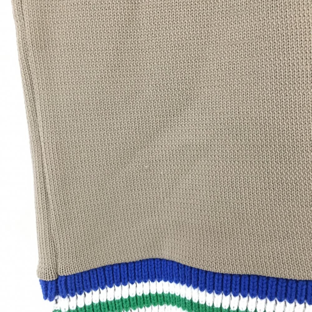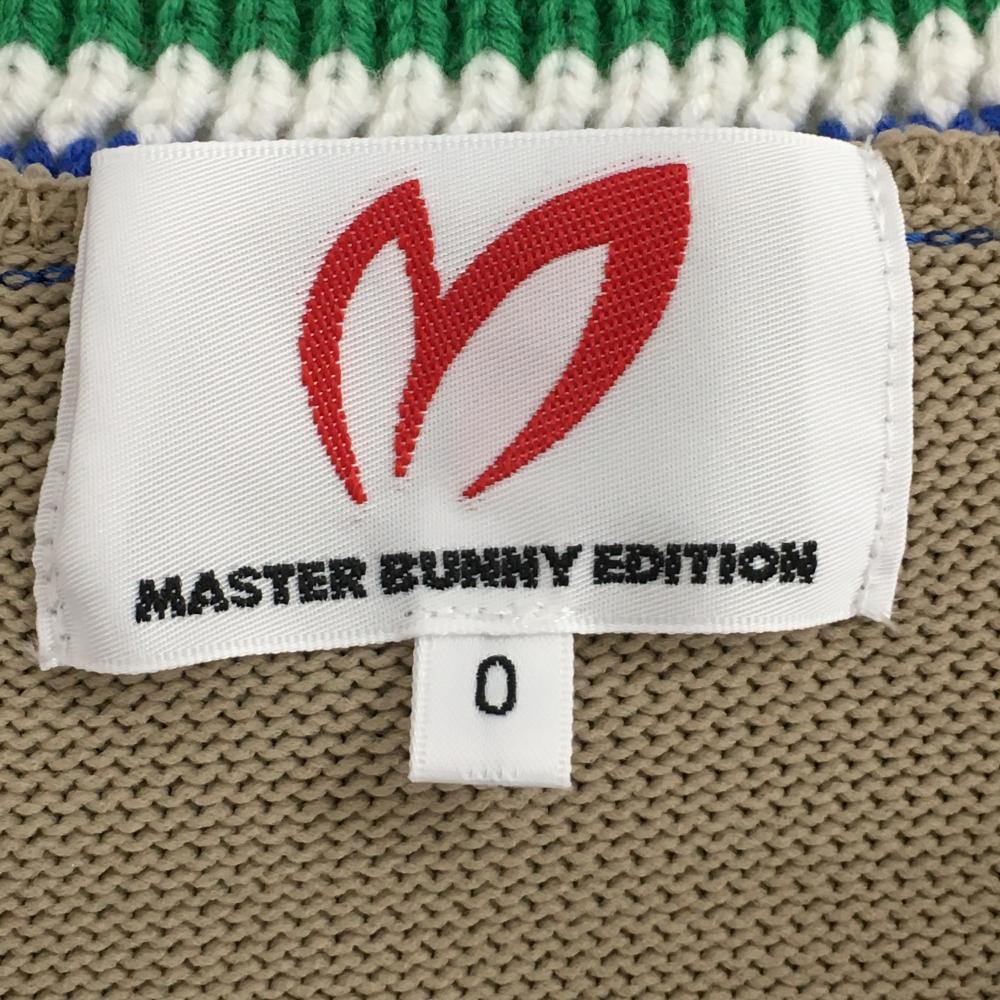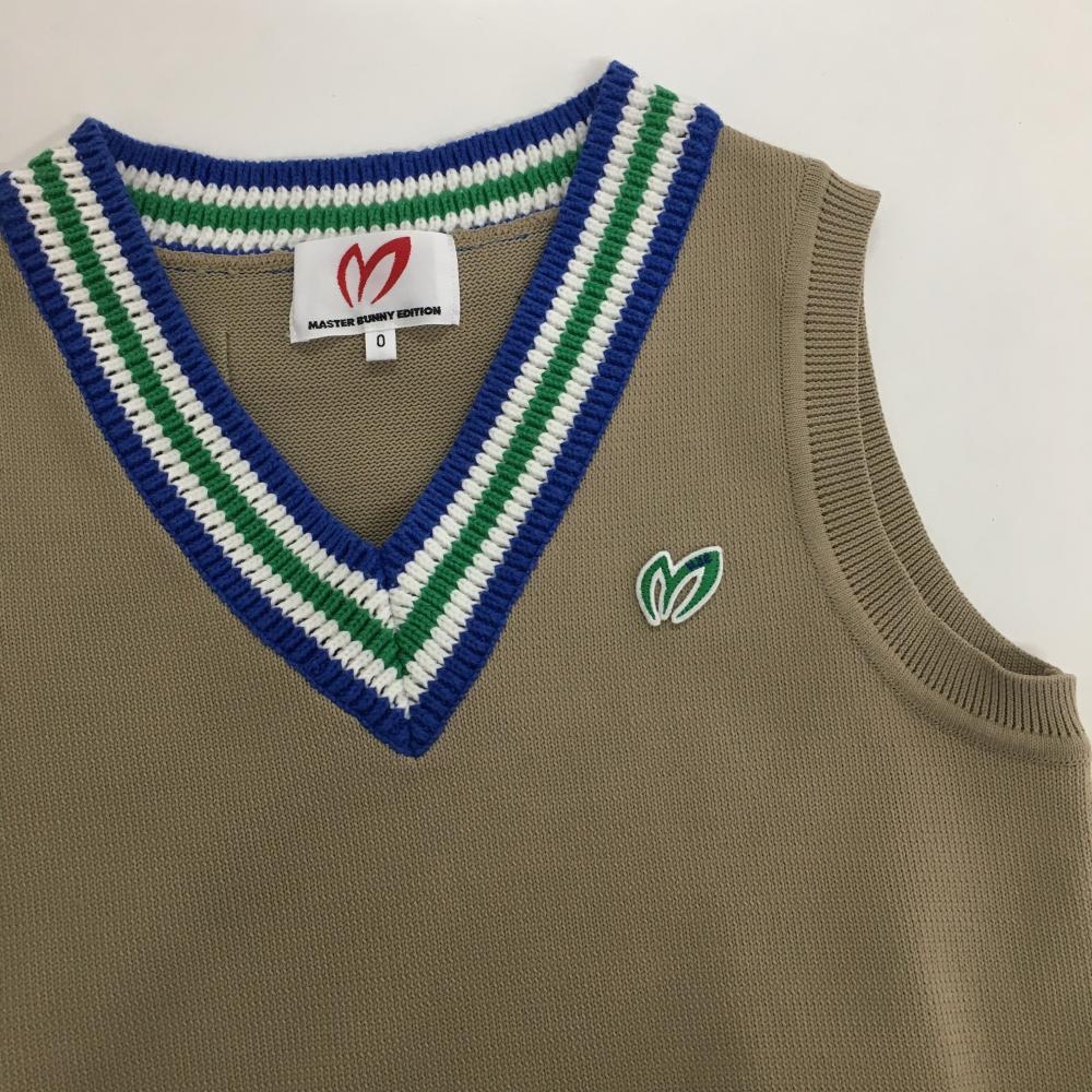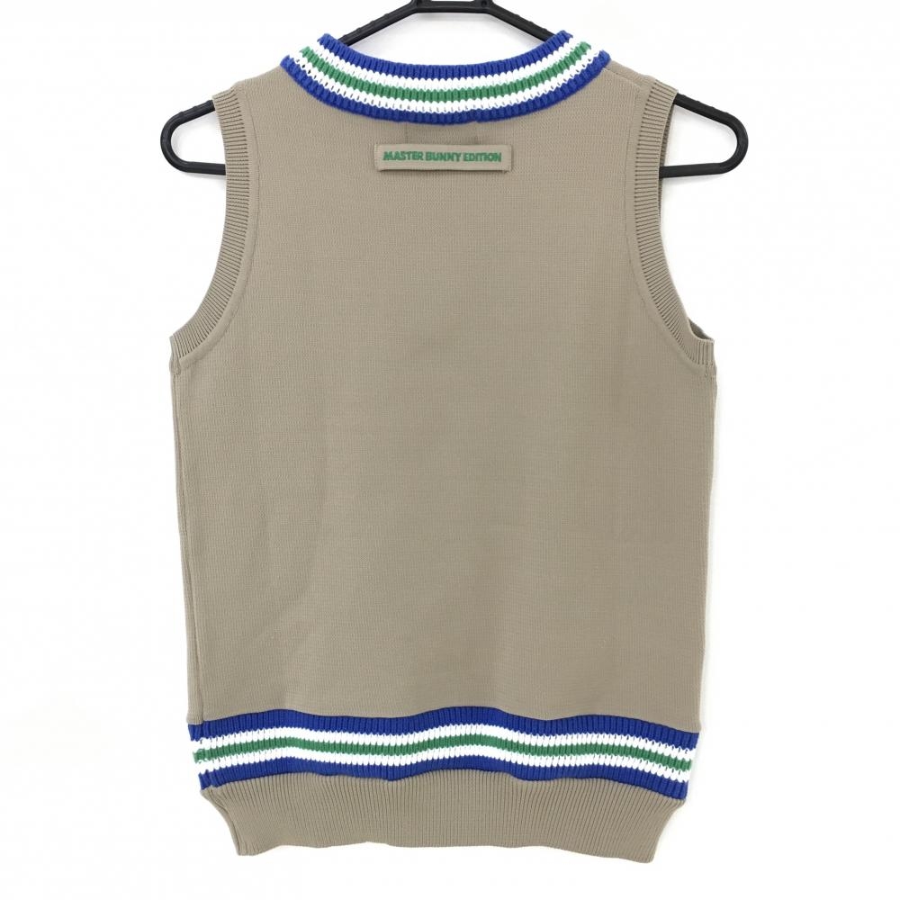 【美品】マスターバニー ニットベスト ベージュ×ブルー ネック・裾ボーダー Vネック レディース 0(S) ゴルフウェア MASTER BUNNY EDITION
