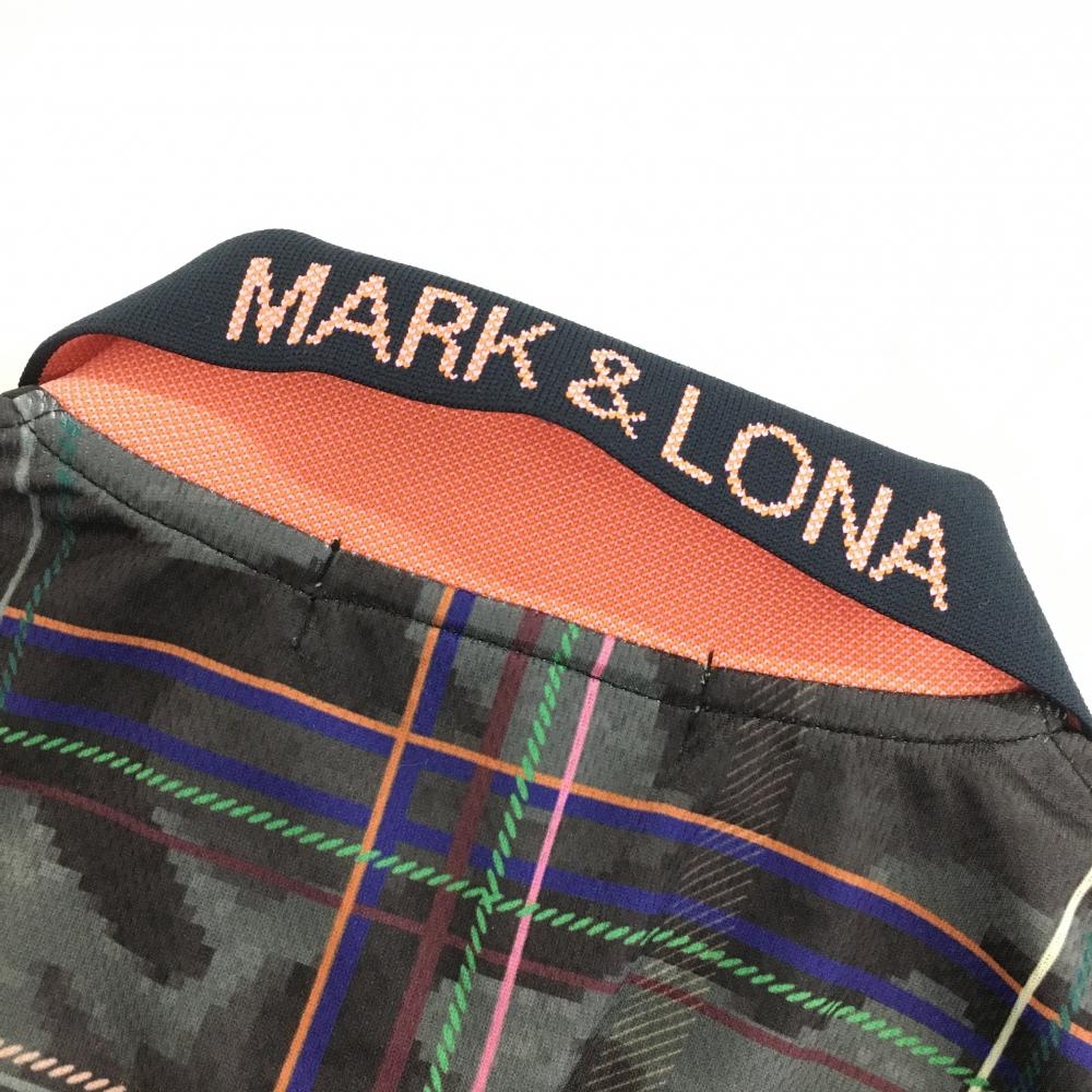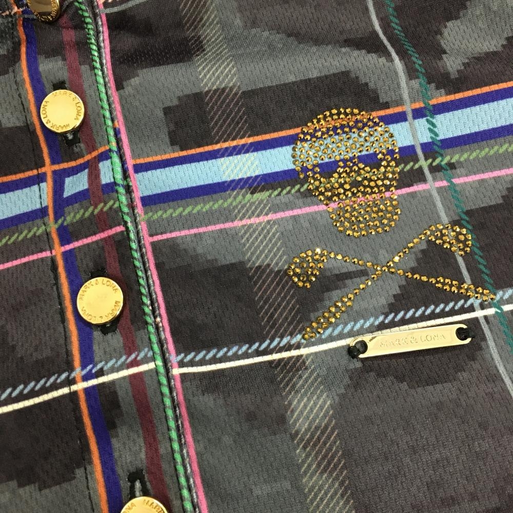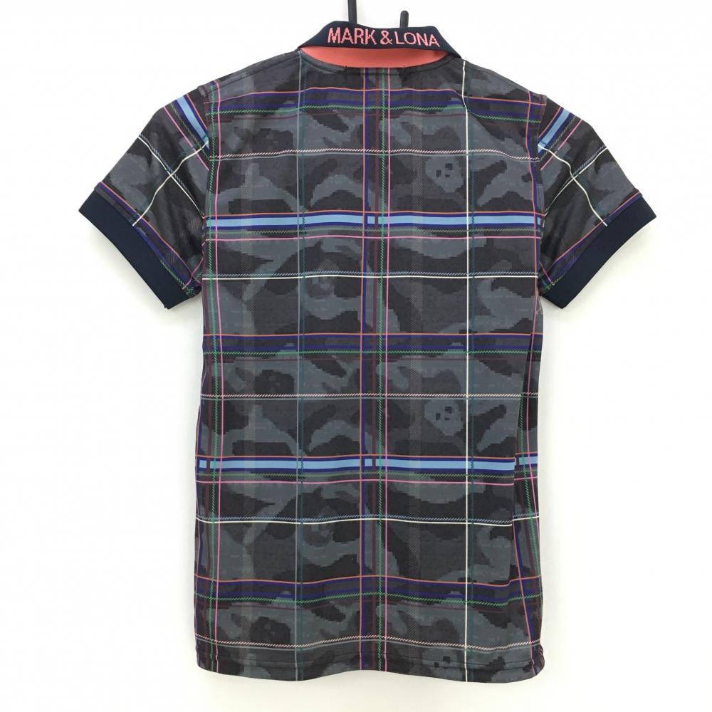 【超美品】マークアンドロナ 半袖ポロシャツ グレー×黒 迷彩 カモフラ チェック 襟後ろロゴ レディース XS ゴルフウェア MARK&LONA