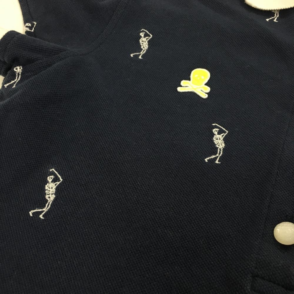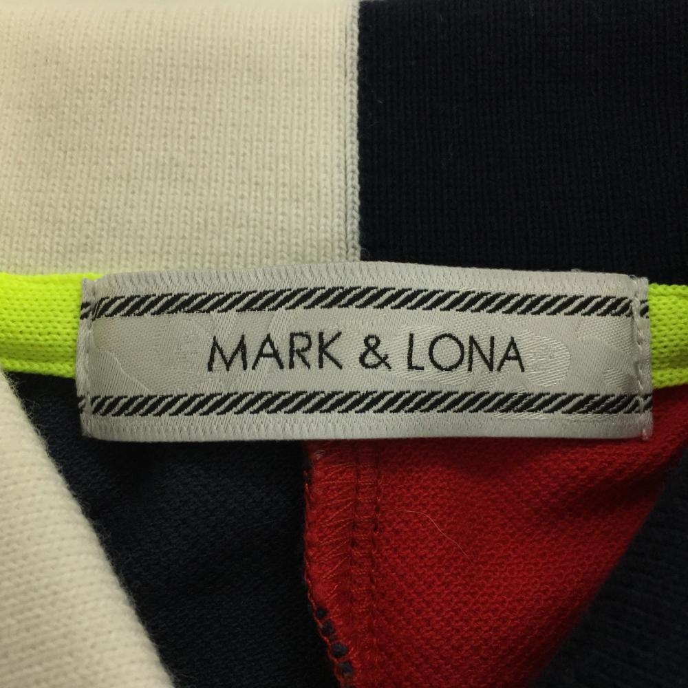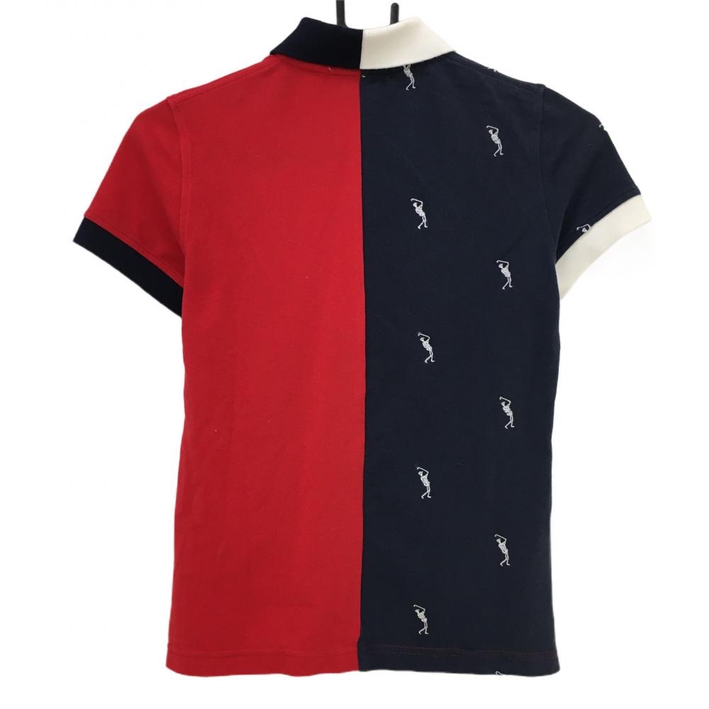 マークアンドロナ 半袖ポロシャツ レッド×ネイビー×白 ネイビー地ゴルファースカル柄 バイカラー レディース XS ゴルフウェア MARK&LONA