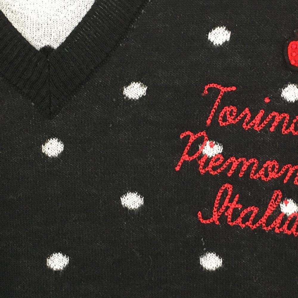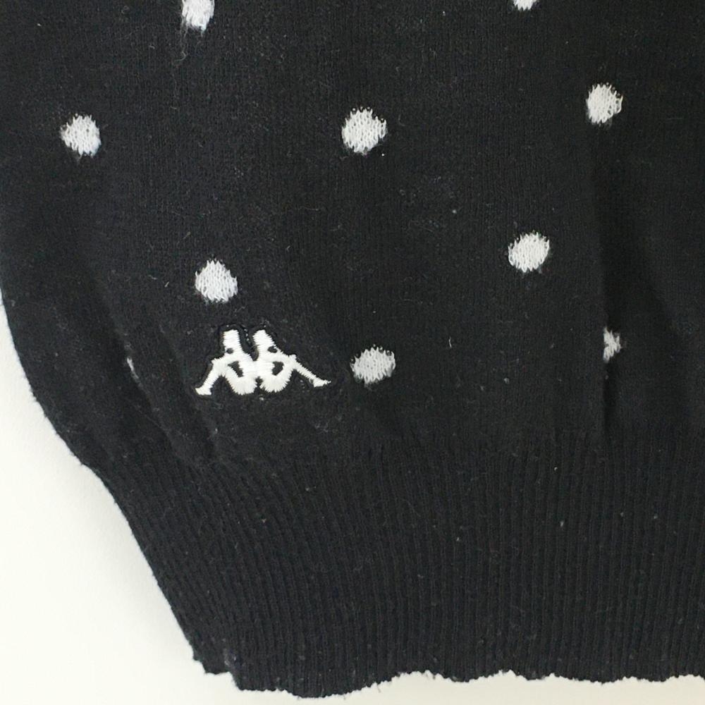 カッパ ニットベスト 黒×白 ドット 総柄 リンゴワッペン レディース M ゴルフウェア Kappa