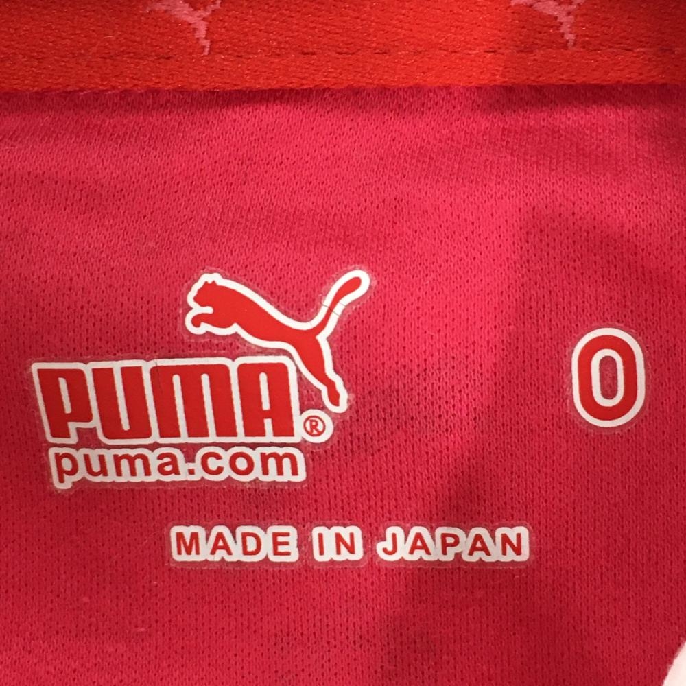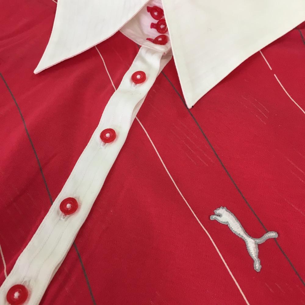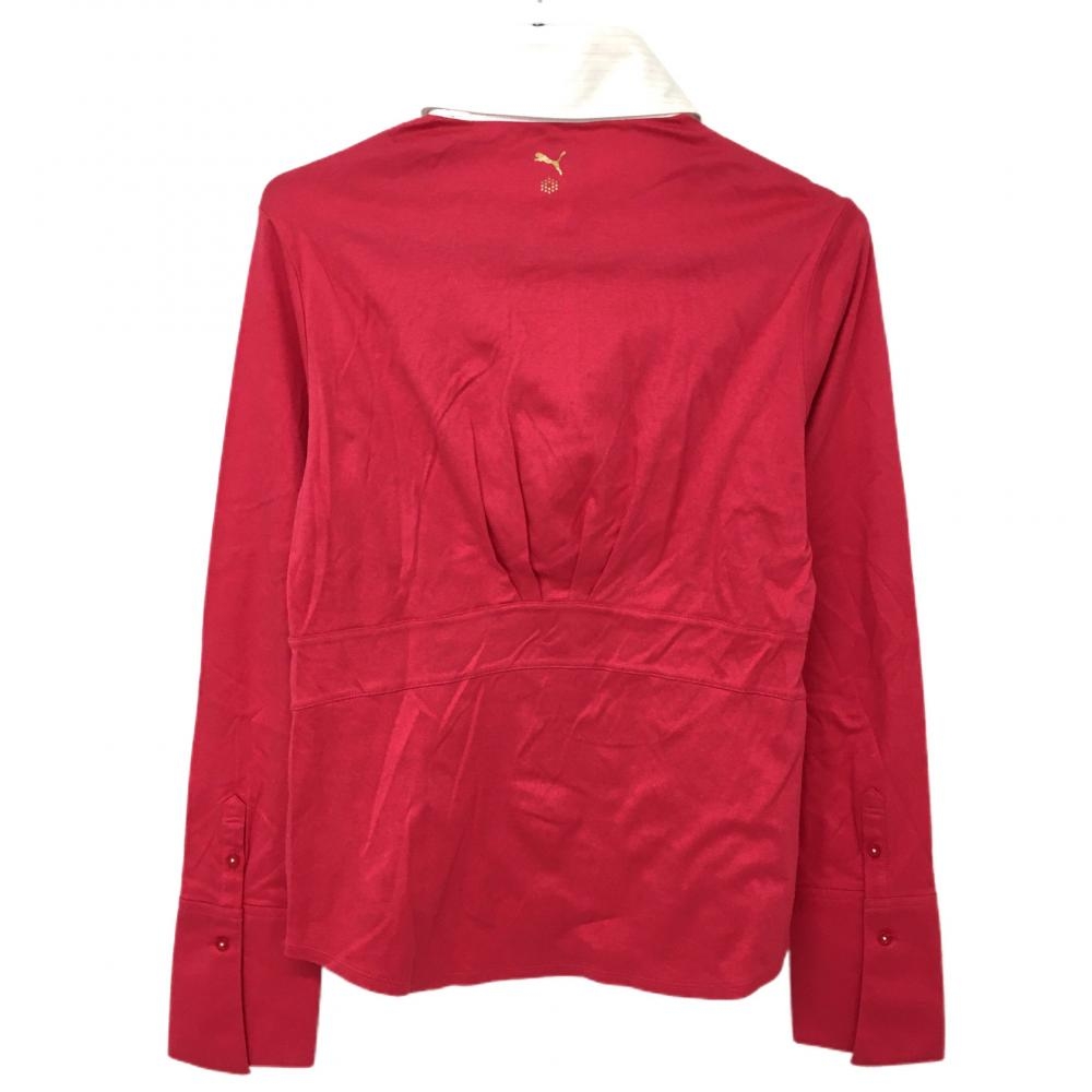 【超美品】プーマ 長袖ポロシャツ ピンク×白 一部斜めボーダー ロゴ刺しゅう レディース O ゴルフウェア PUMA