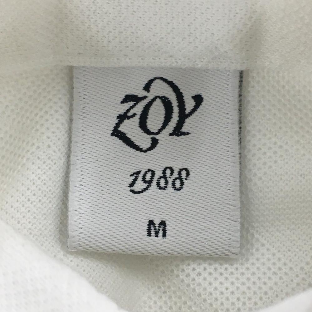 ゾーイ 長袖ポロシャツ 白×レッド ダイヤ柄地模様 胸元ロゴ レディース M ゴルフウェア ZOY