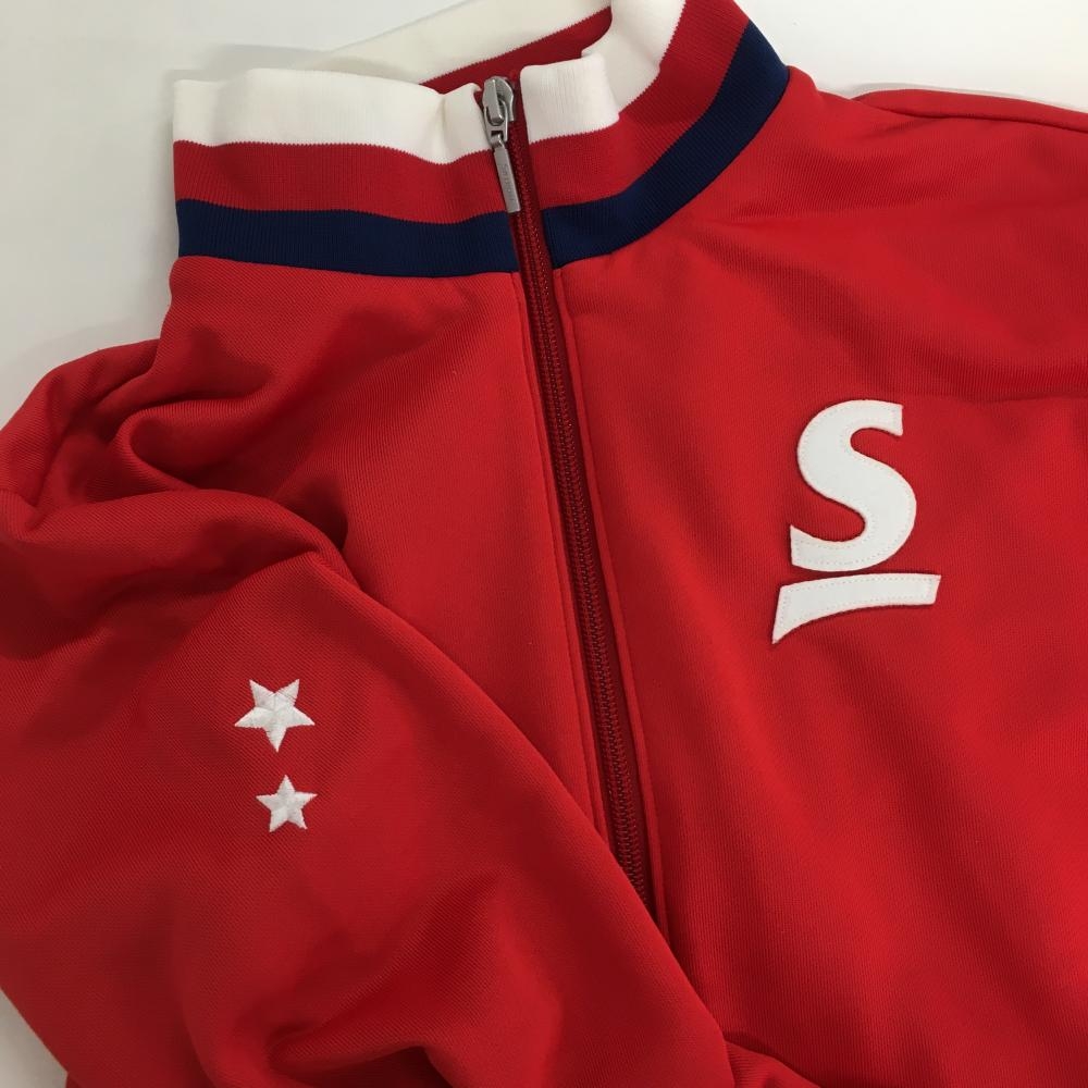 【美品】スリクソン ジャケットブルゾン レッド×白 リブ部ライン 胸元ロゴ レディース L ゴルフウェア SRIXON