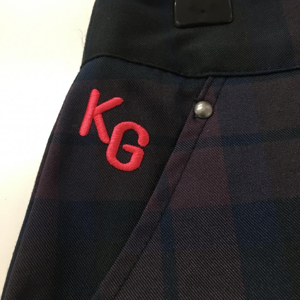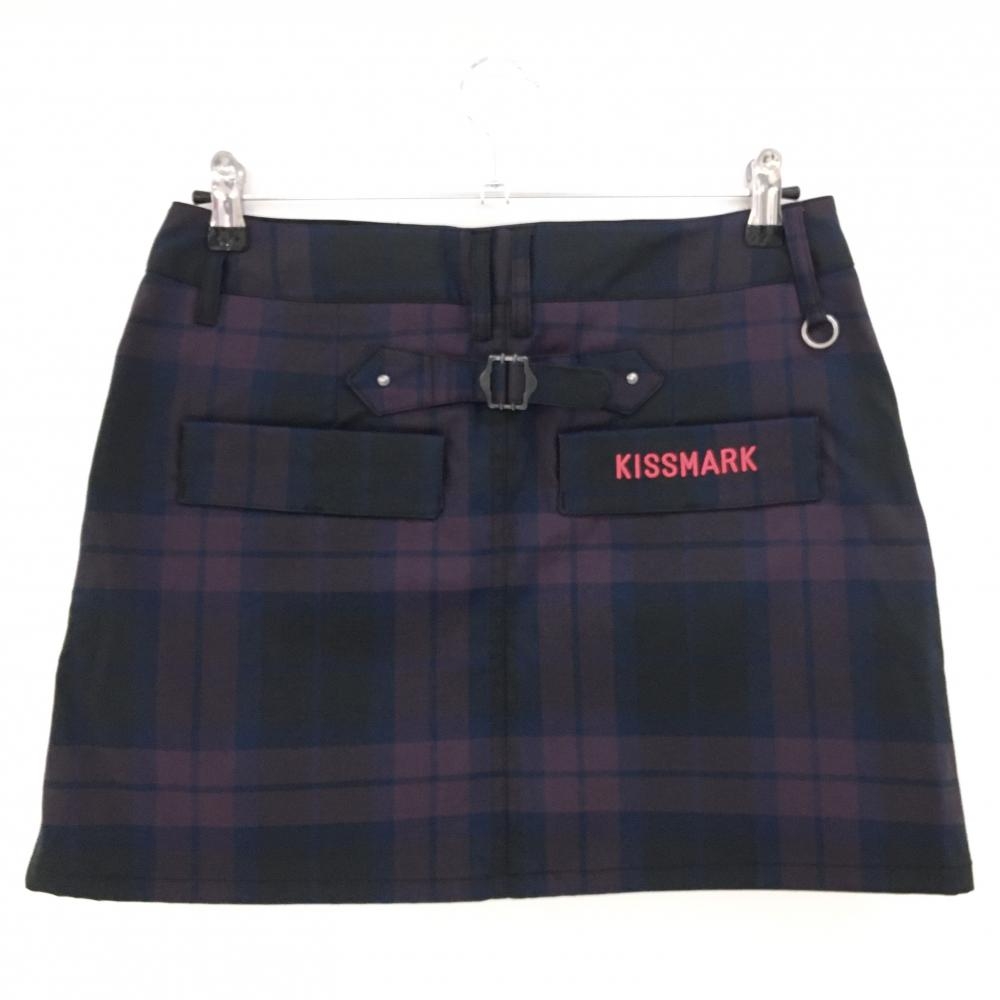 【超美品】キスマーク スカート パープル×ネイビー チェック バックストラップ レディース 11(L) ゴルフウェア kissmark