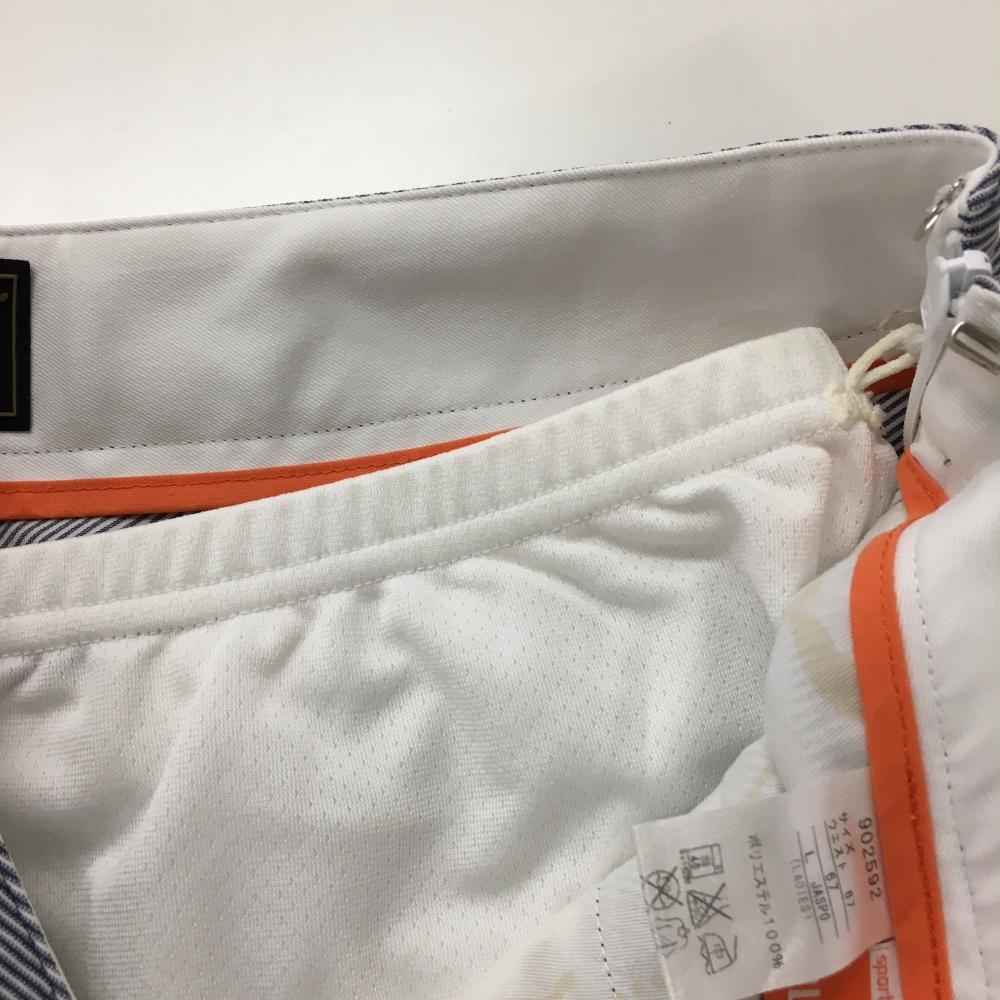 【超美品】プーマ スカート ネイビー×白 細ストライプ調 ストレッチ DRYCELL インナーパンツ付 レディース L ゴルフウェア PUMA