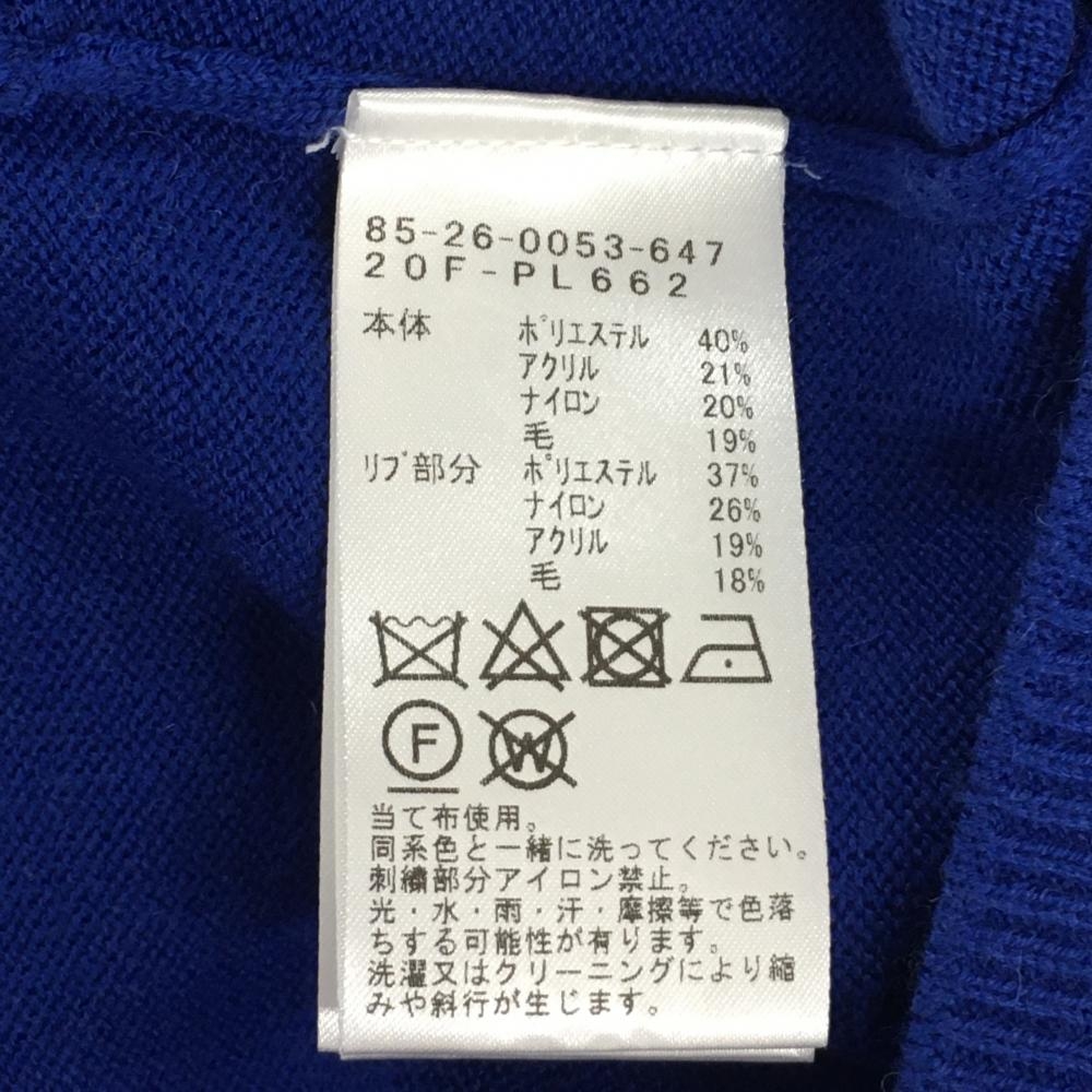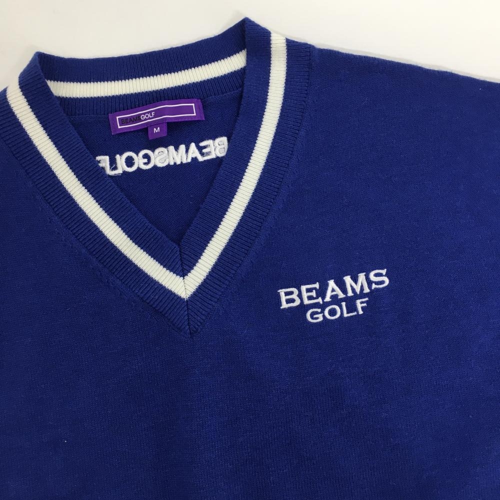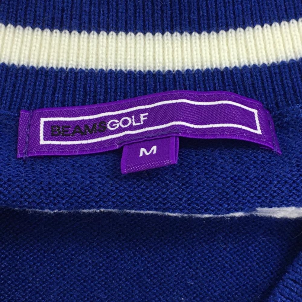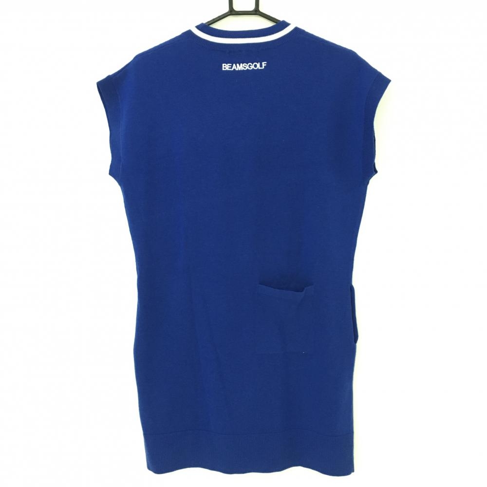 【超美品】ビームスゴルフ ノースリーブニットワンピース ブルー×白 Vネック ウール混 レディース M ゴルフウェア BEAMS GOLF