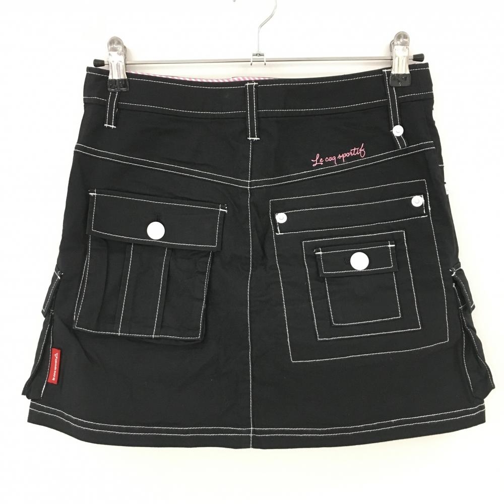 【美品】ルコック カーゴスカート 黒×白 ロゴ刺しゅう ステッチ レディース 9(M) ゴルフウェア le coq sportif