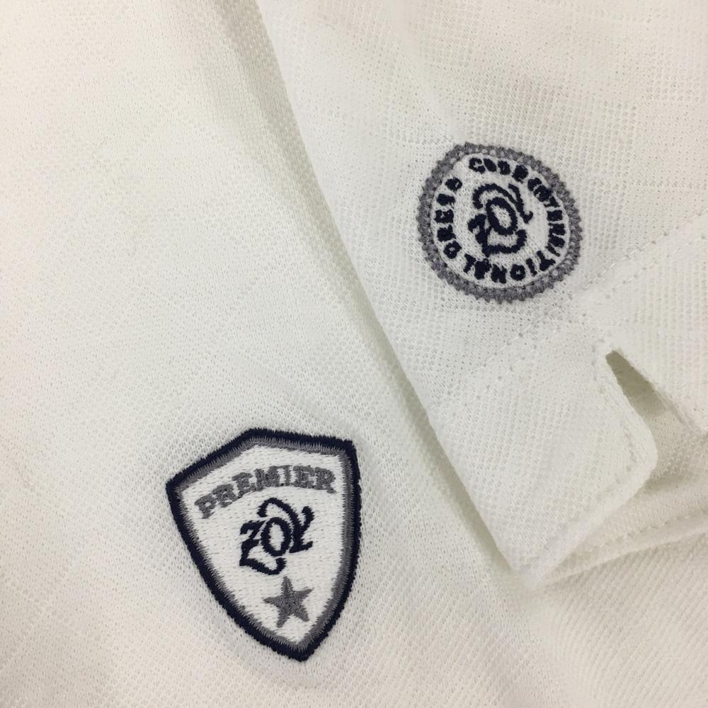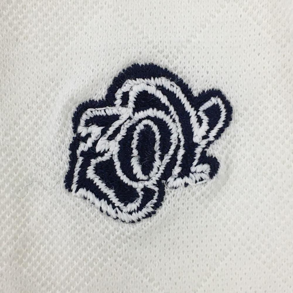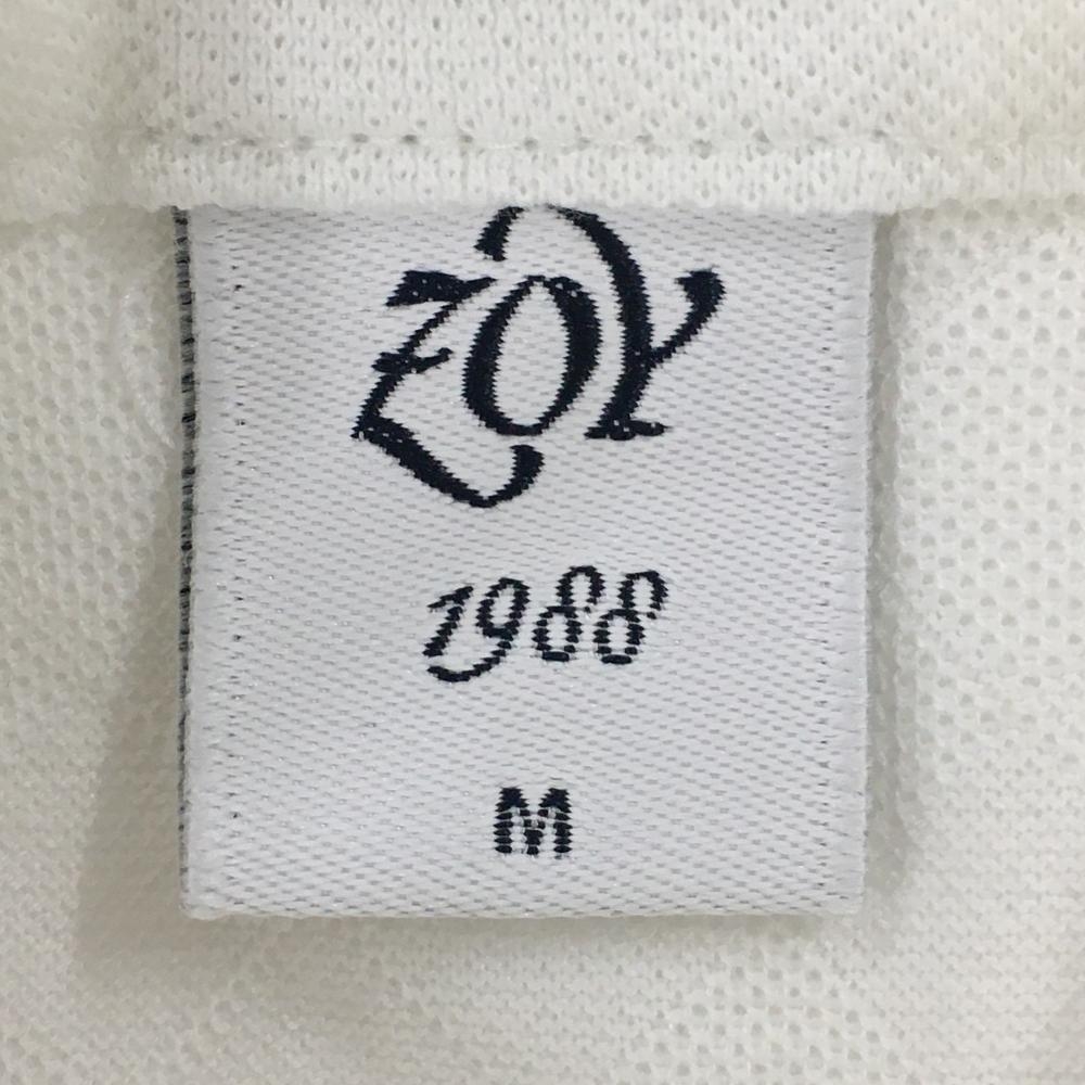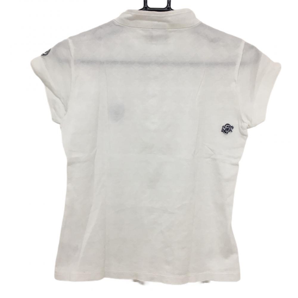 【美品】ゾーイ 半袖ポロシャツ 白 地模様 スタンドカラー ロゴ刺しゅう レディース M ゴルフウェア ZOY