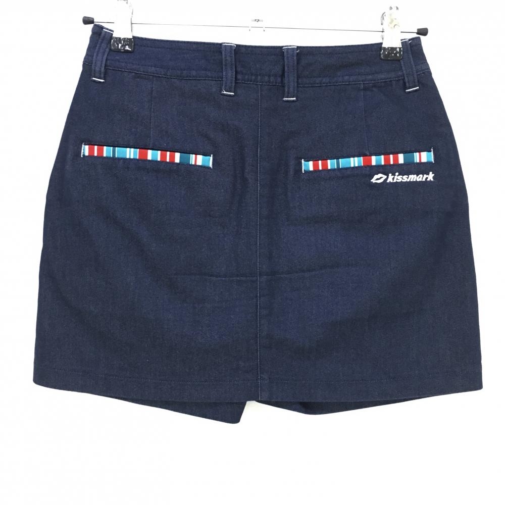 【美品】キスマークゴルフ スカート ネイビー×レッド 一部ストライプ 内側インナーパンツ レディース 7(S) ゴルフウェア Kissmark golf