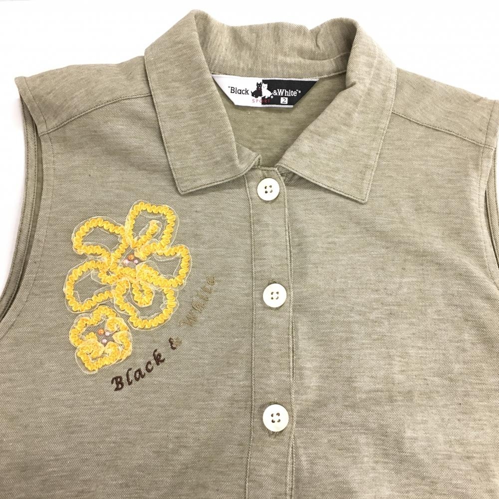 【超美品】ブラックアンドホワイト ノースリーブワンピース グリーン×オレンジ 胸元花装飾 レディース 2(M) ゴルフウェア Black&White