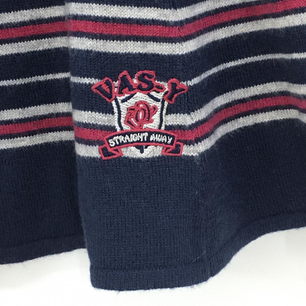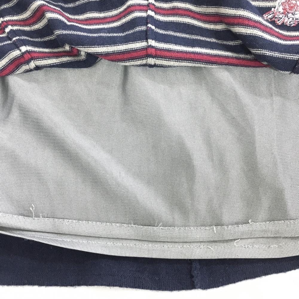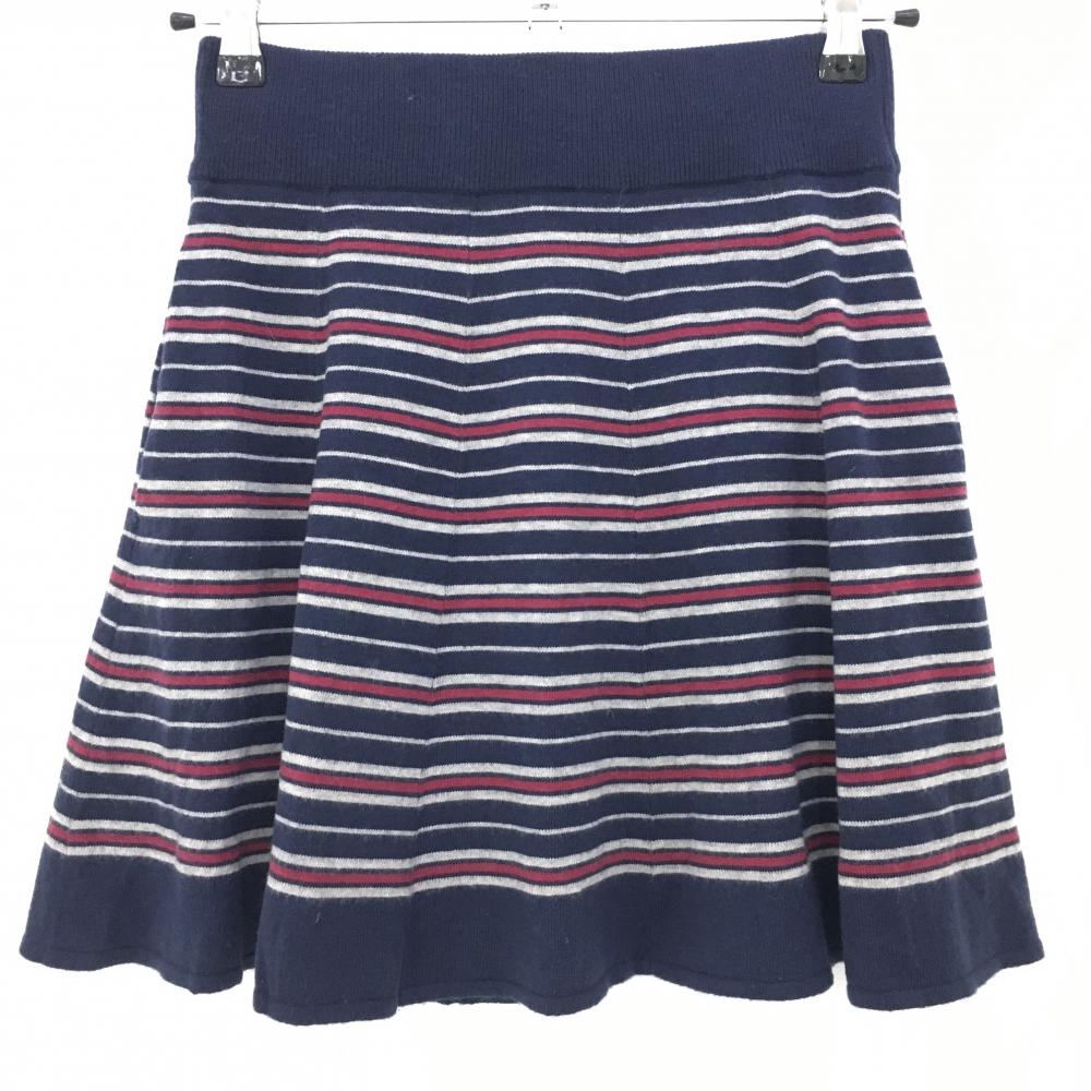 ゾーイ ニットスカート ネイビー×グレー ボーダー 裾ロゴ 裏地付き ウール混 レディース M ゴルフウェア ZOY